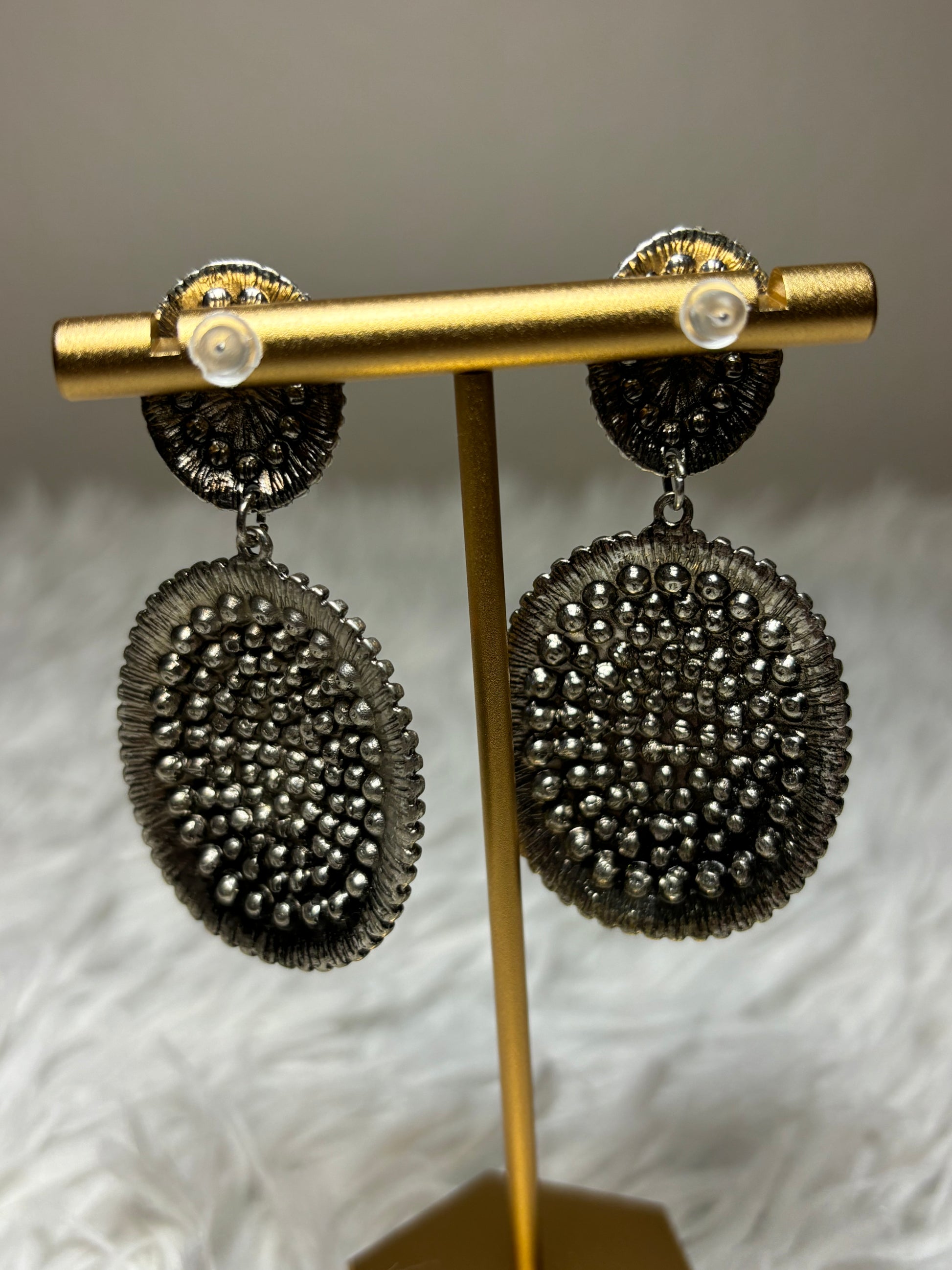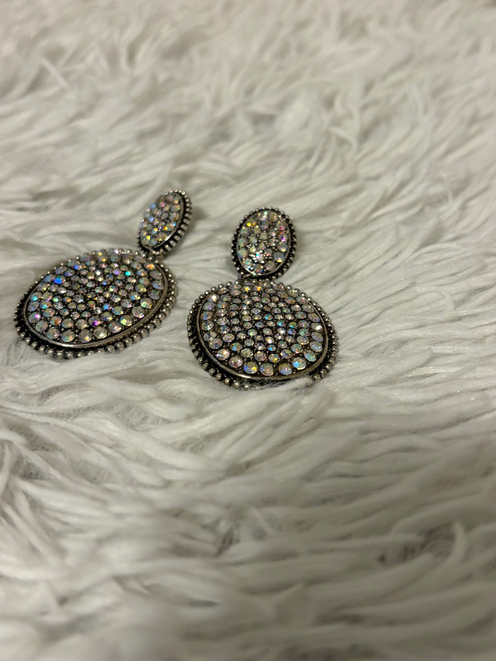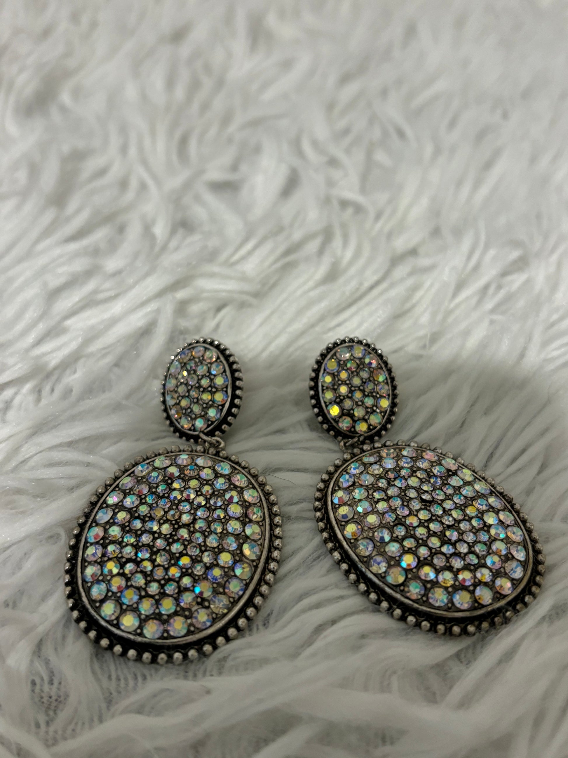These Stone Post Earrings feature a burnished silver finish paired with AB color rhinestones, adding a refined touch to any ensemble. Measuring 2.5 inches in length and 1.25 inches in width, they offer a balanced statement size without overwhelming. Crafted lead-free, they provide both style and safety for everyday wear.