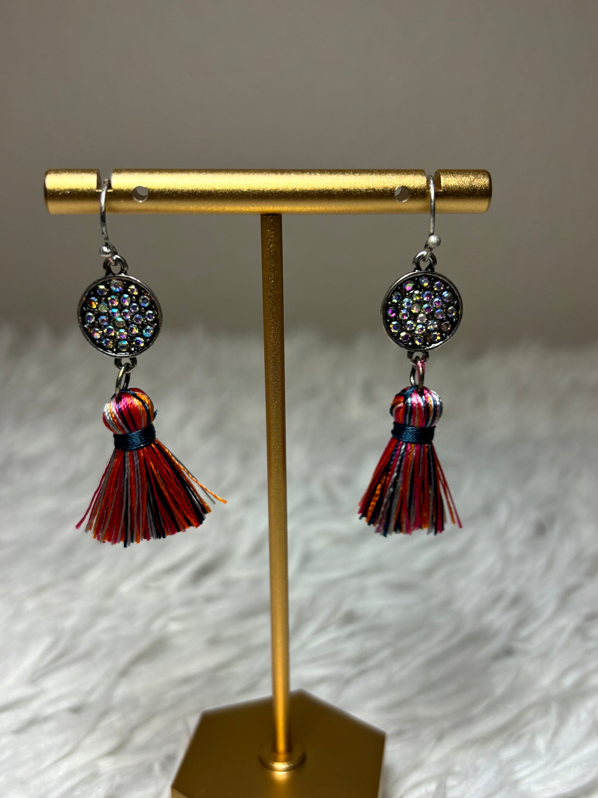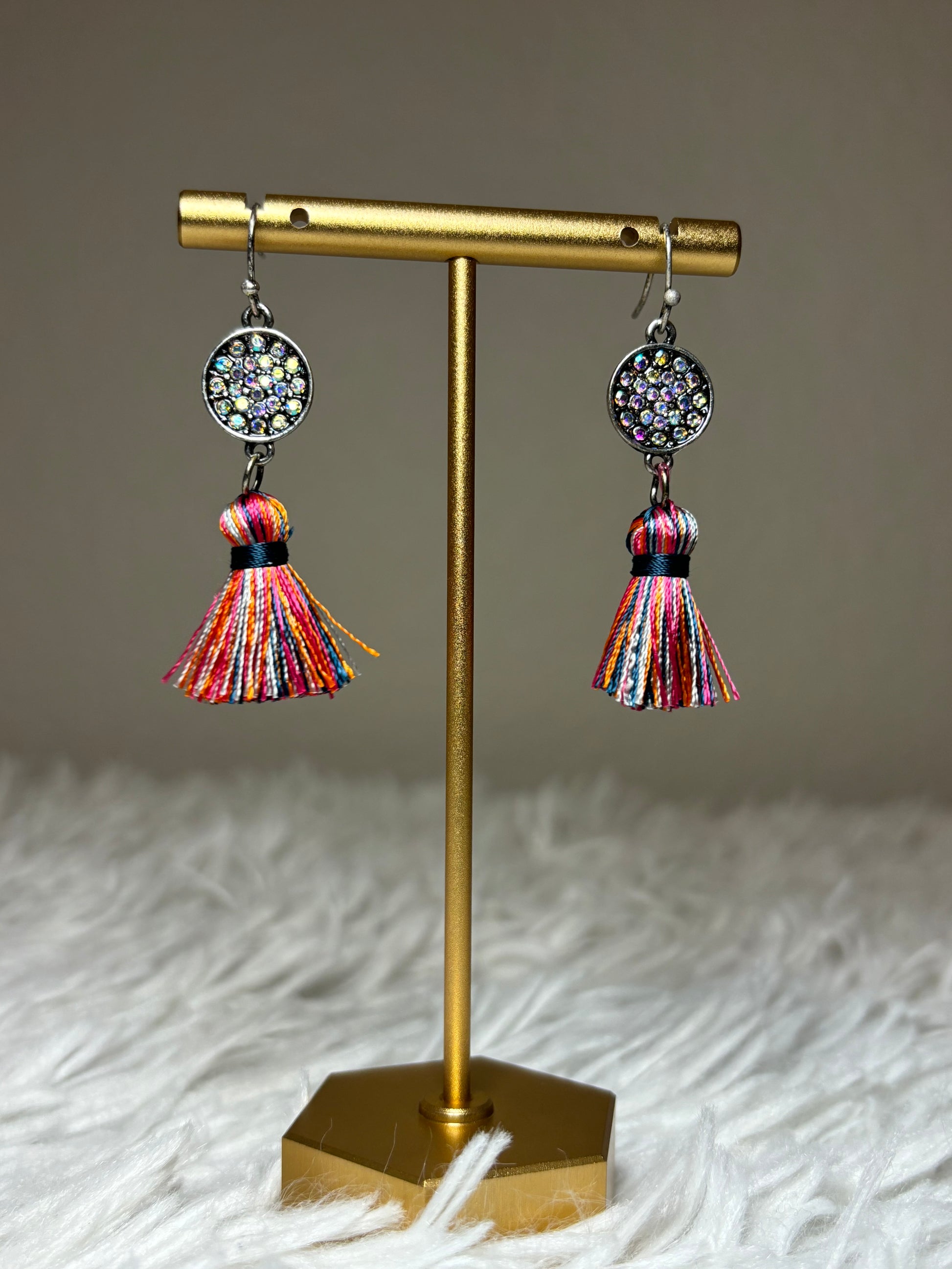 AB Stone Earrings with Multi-Colored Tassel Earrings