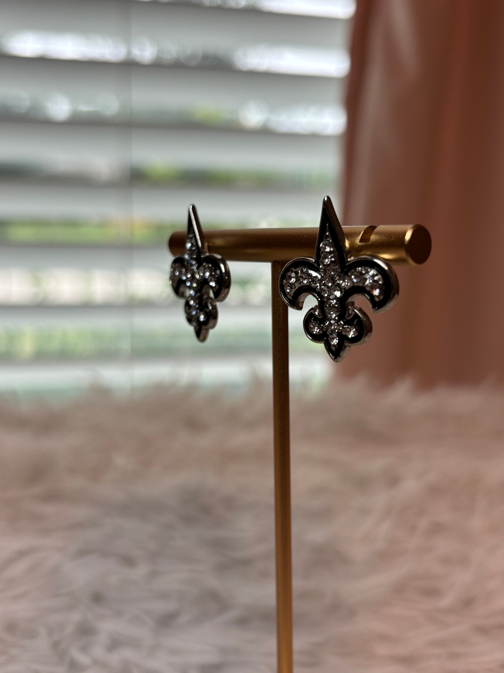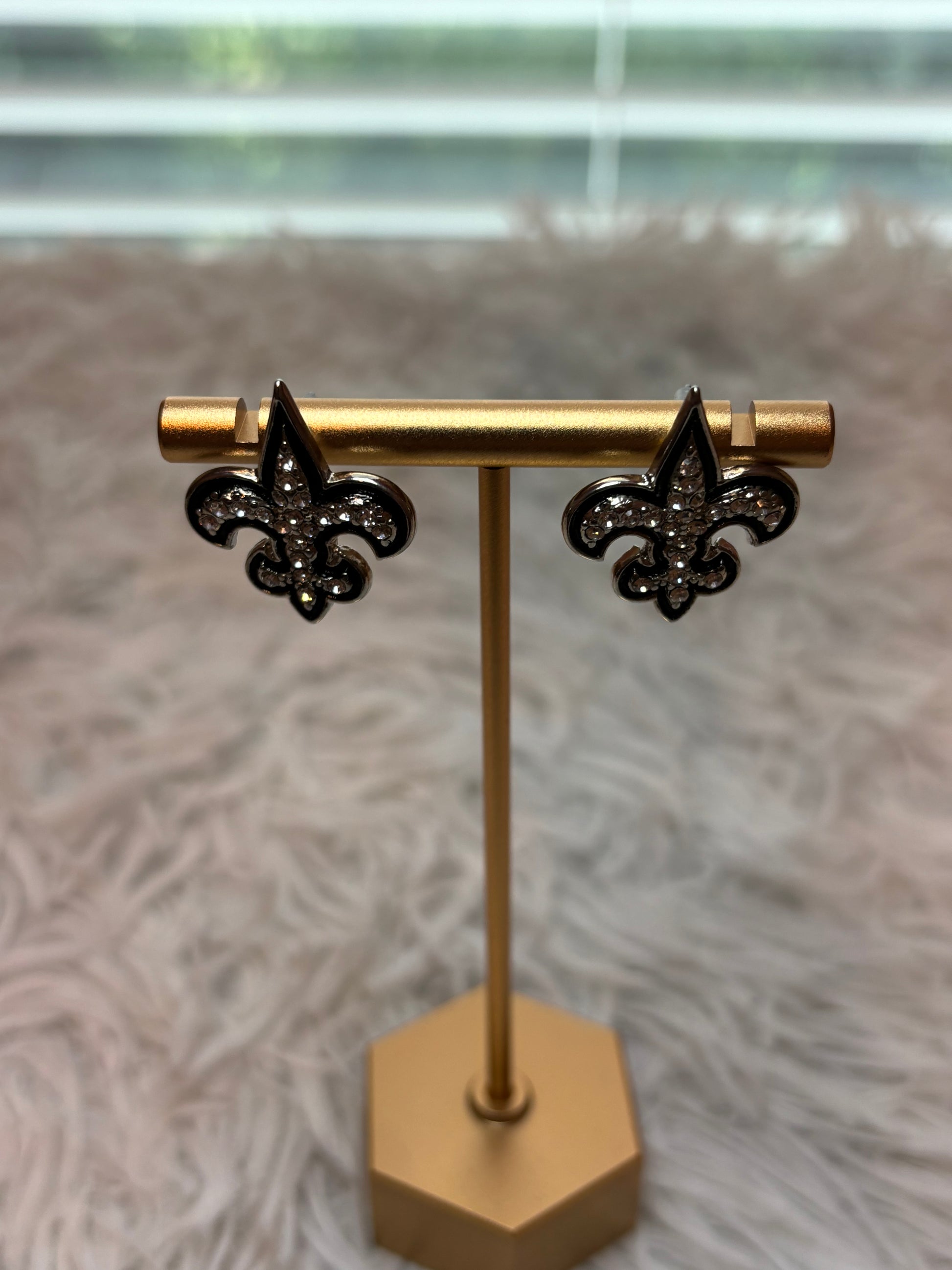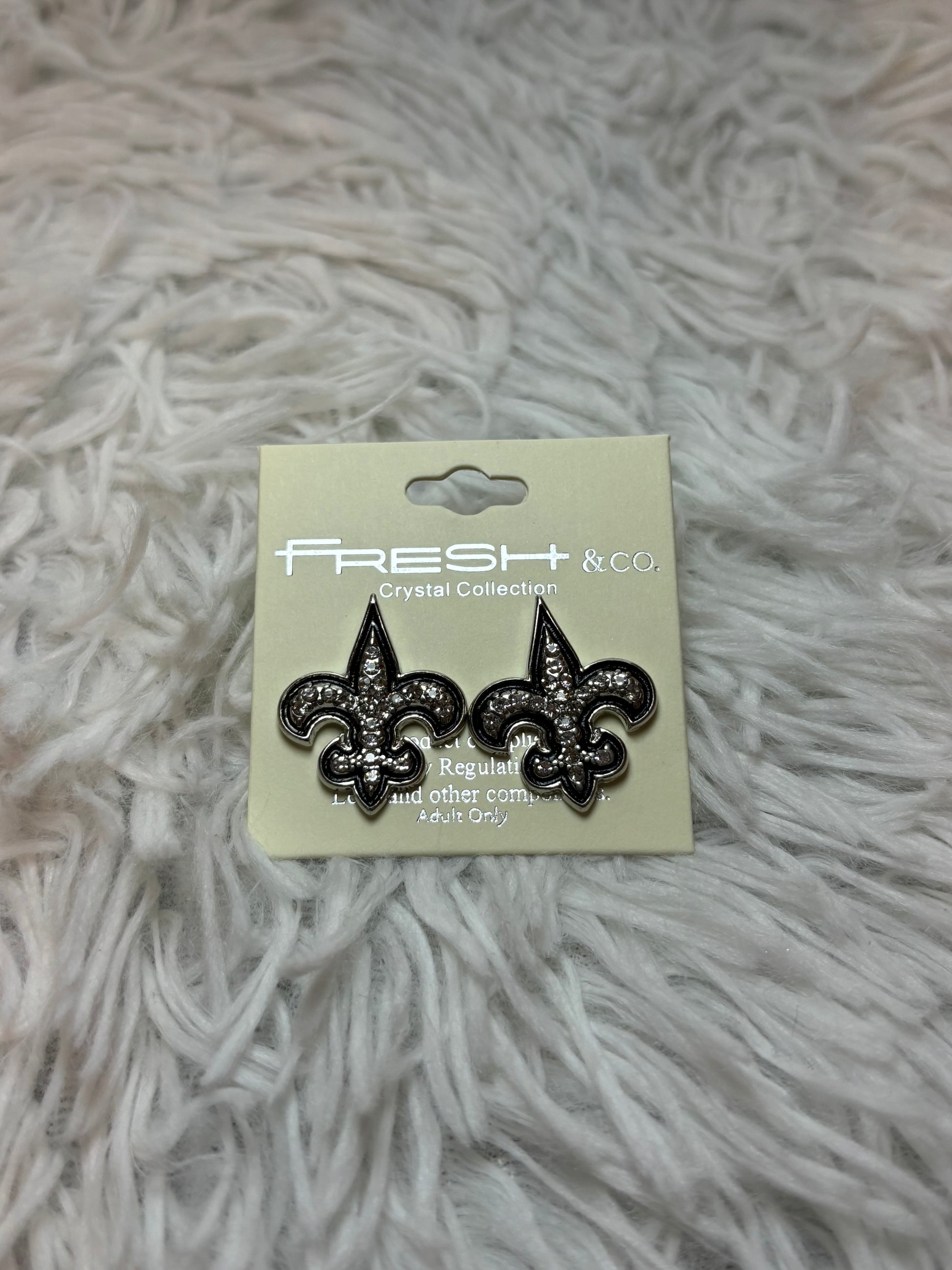 Fleur De Lis Silver Rhinestone Earrings