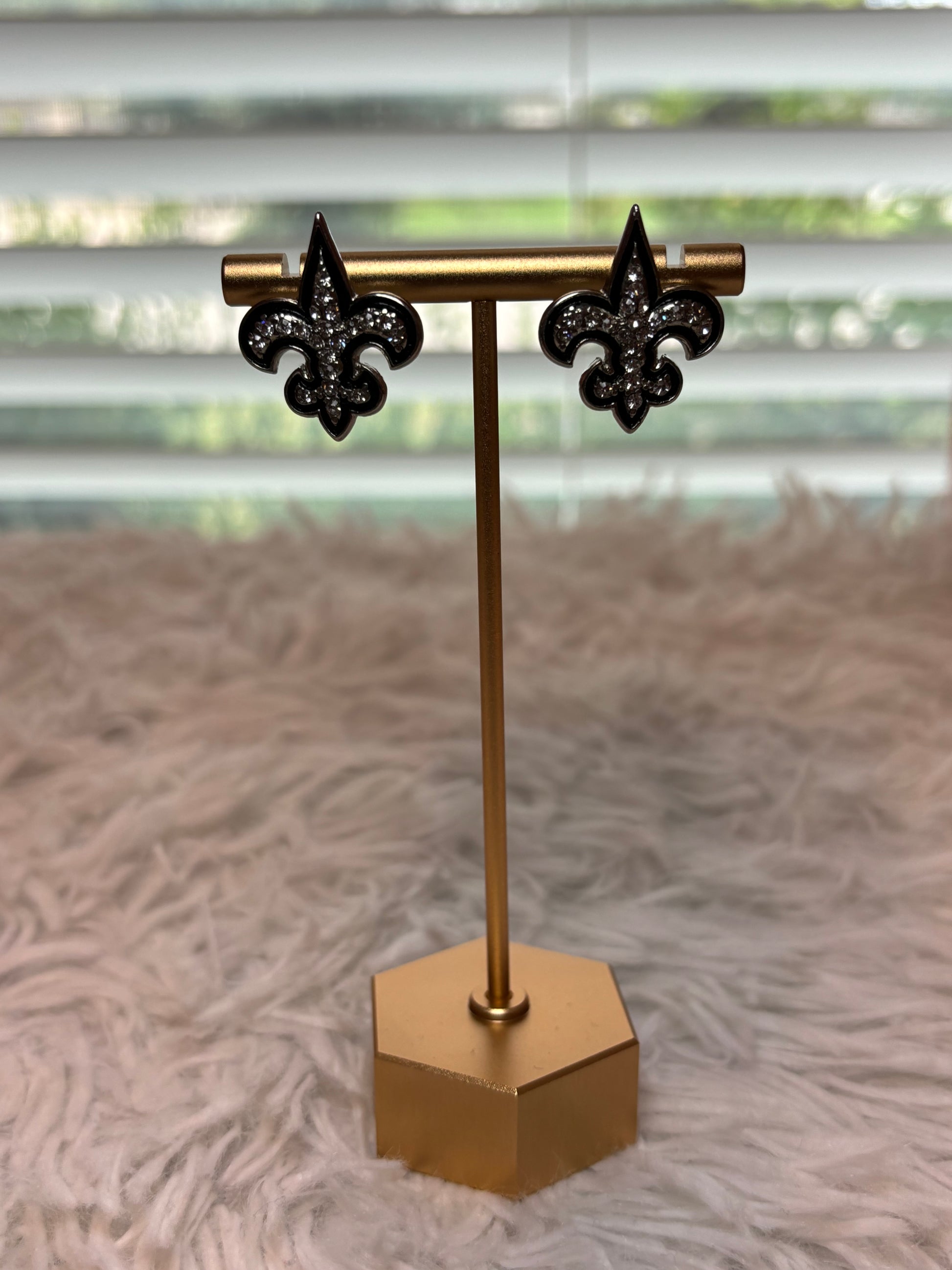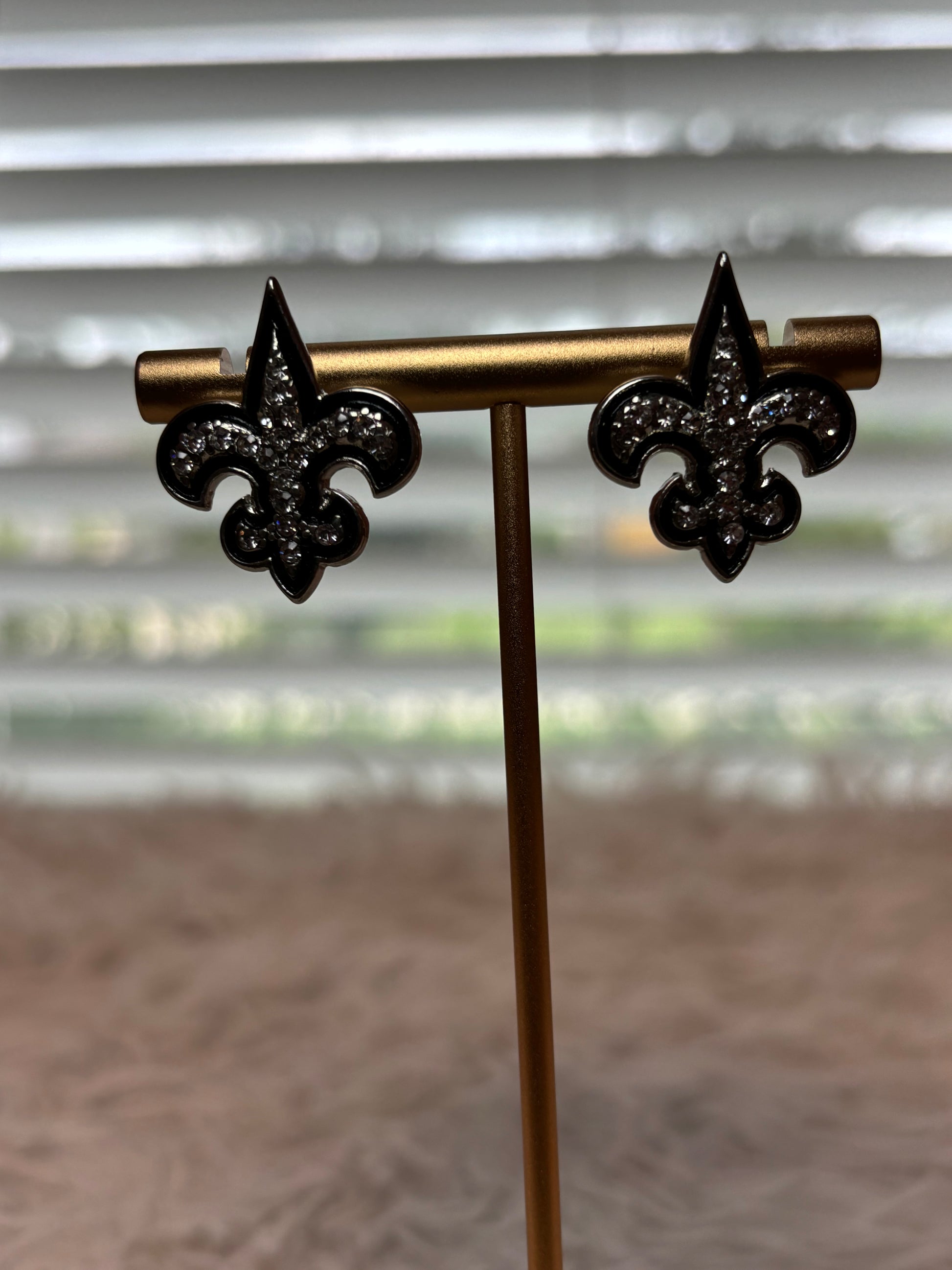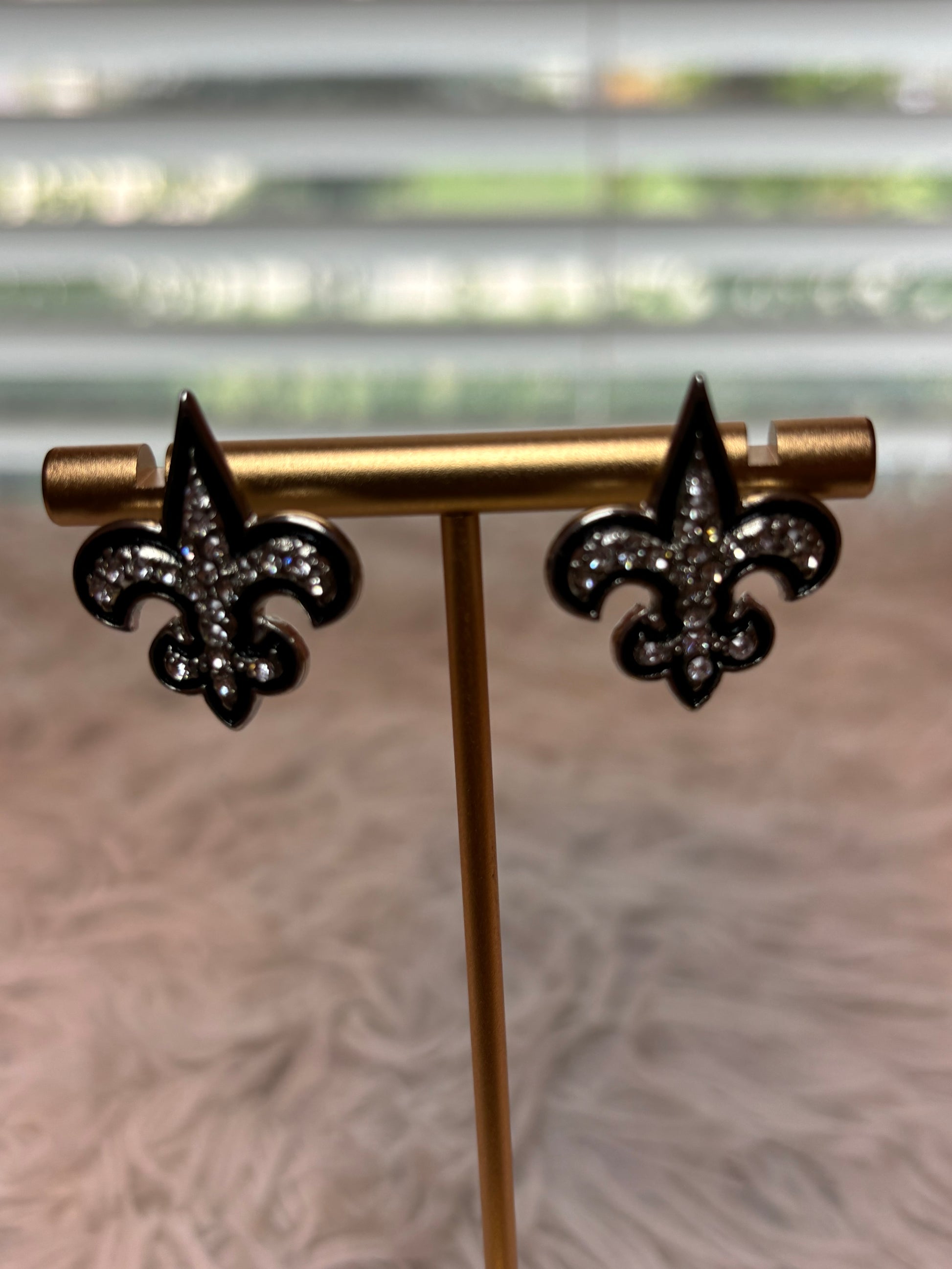 Fleur De Lis Silver Rhinestone Earrings