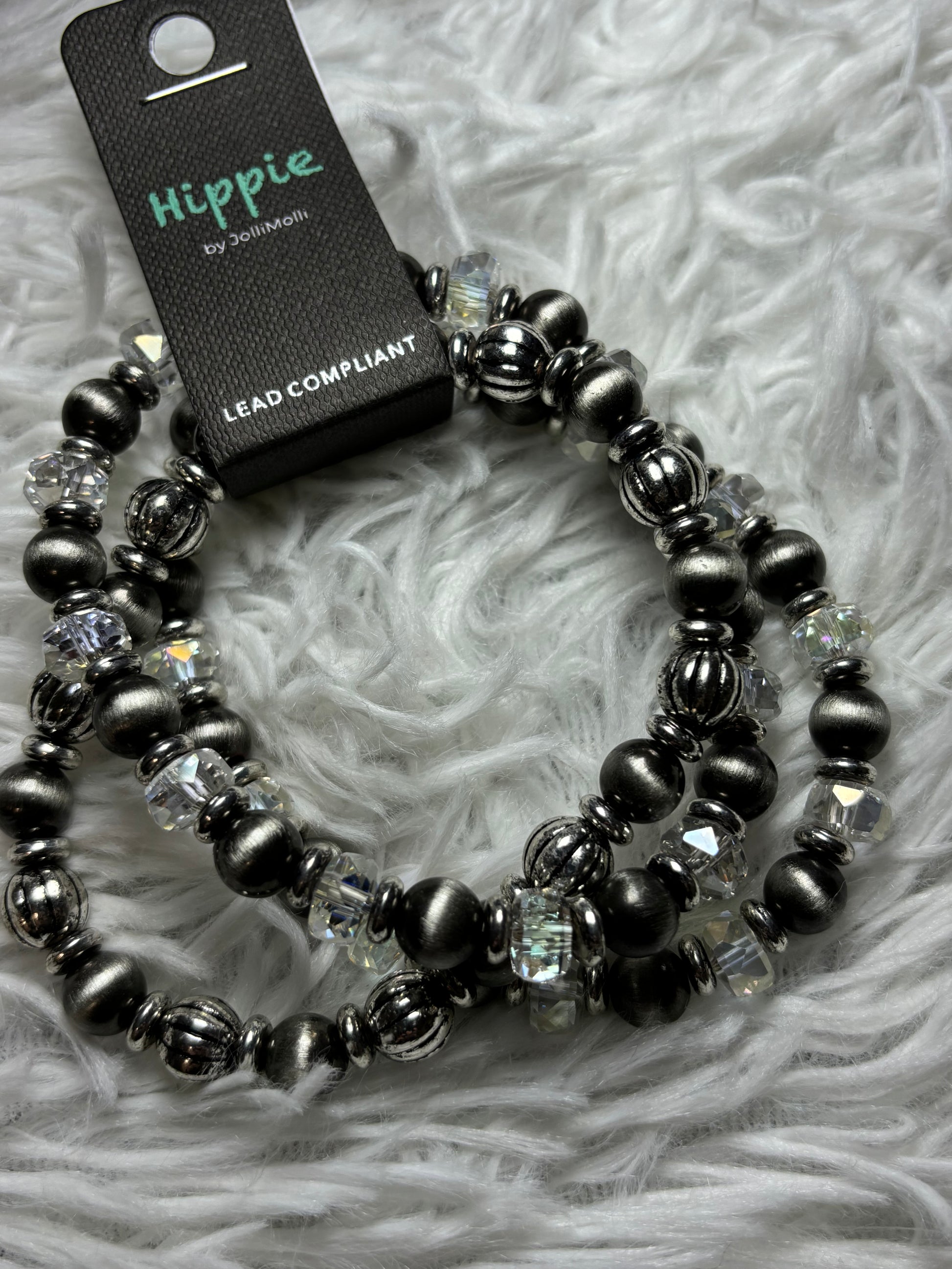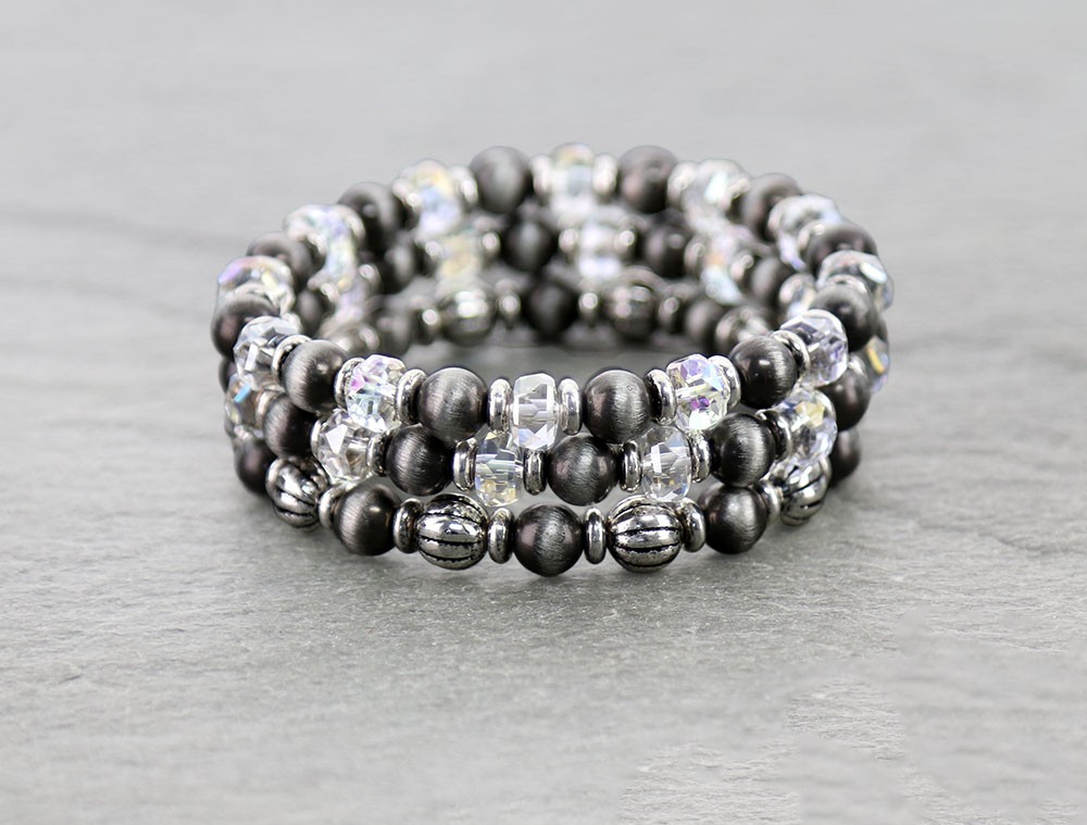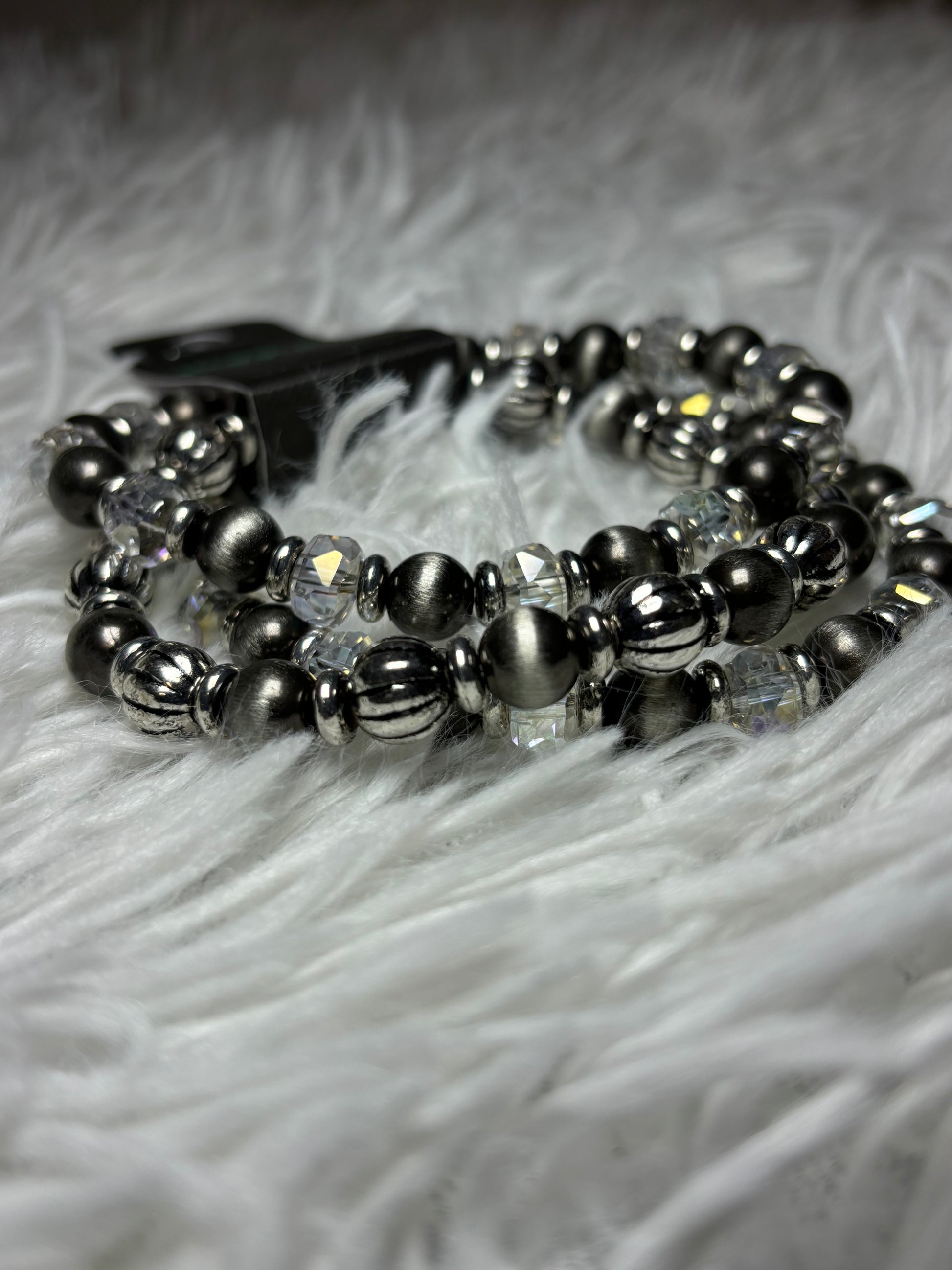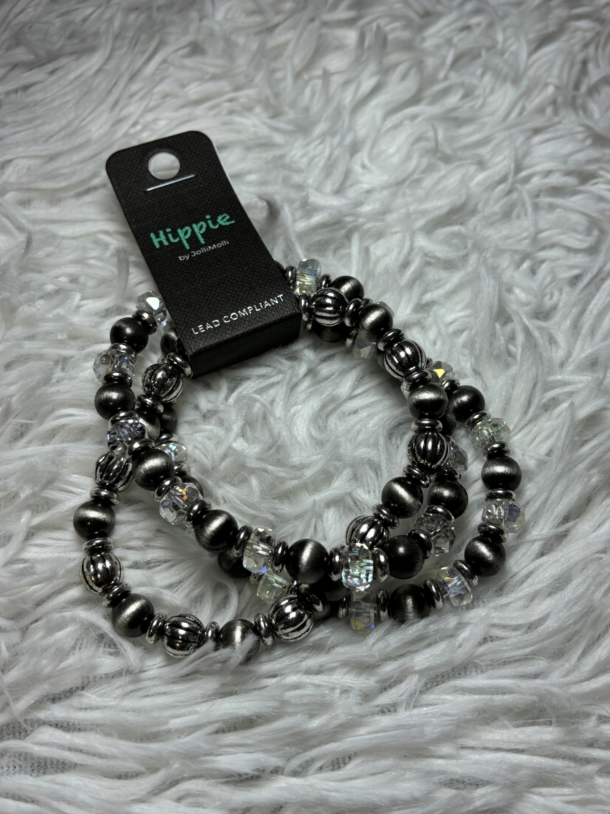 Elevate your accessory collection with these Glass Bead Stackable Bracelets. Featuring burnished silver and clear-colored beads, they offer a refined, versatile look suitable for layering. Crafted without lead, these bracelets ensure safe, comfortable wear while adding a subtle shine to any outfit. Their stackable design allows effortless customization to match your personal style.