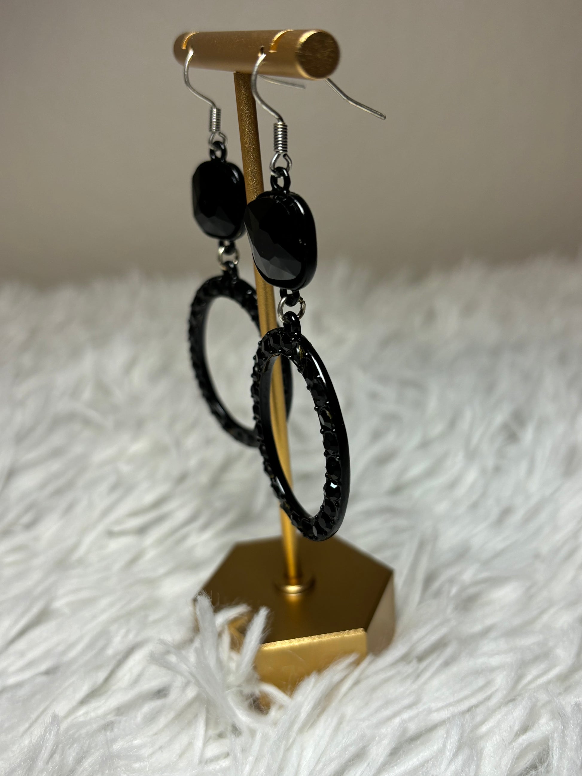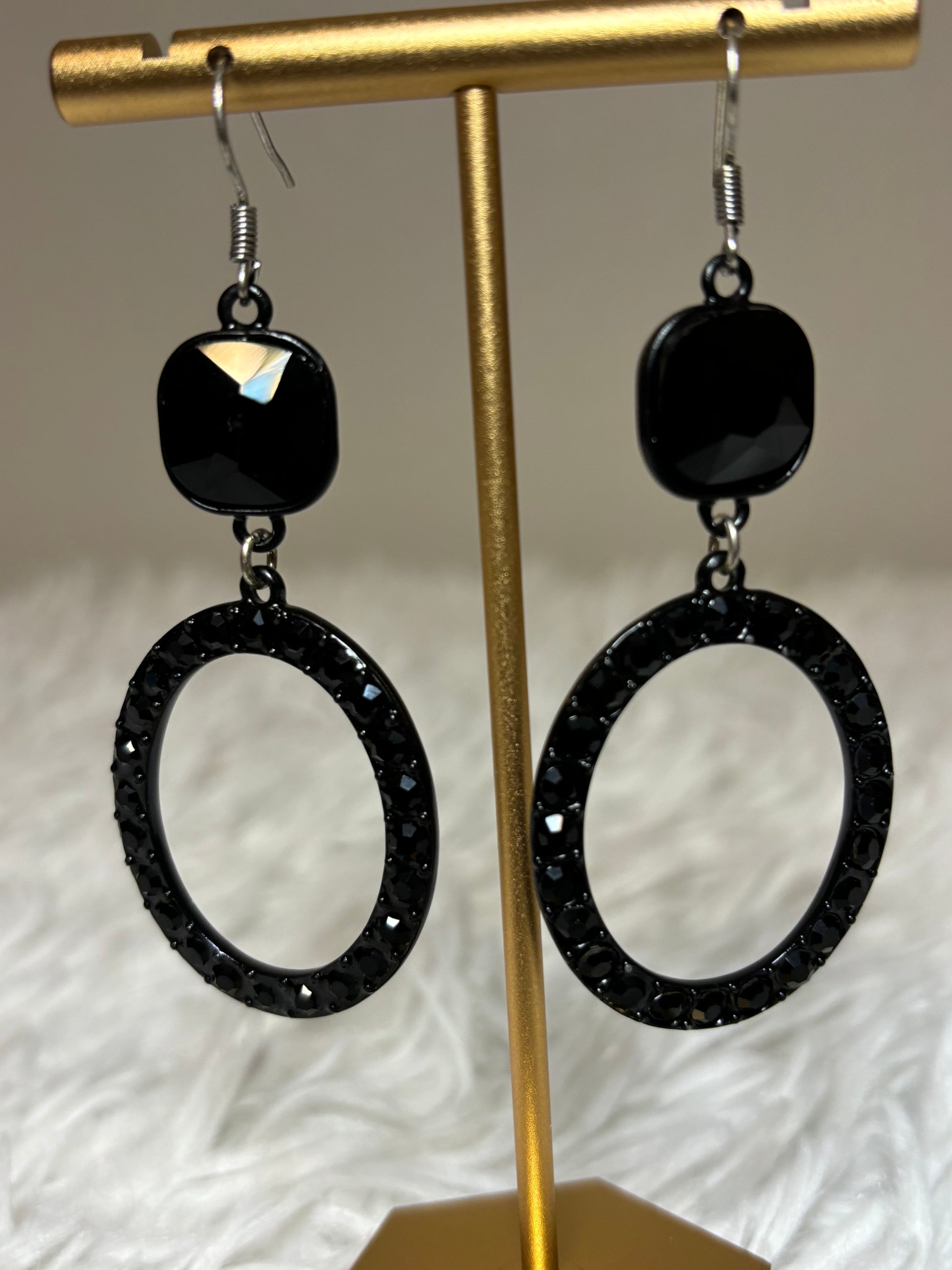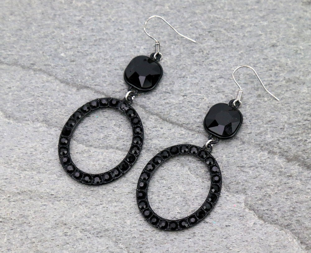 These dangle earrings feature a striking oval-shaped black glass stone that adds a touch of sophistication to any outfit. Measuring 2.25 inches long and 1.25 inches wide, they strike the perfect balance between bold style and wearability. Crafted without lead, these earrings ensure safe, comfortable wear. Ideal for both formal occasions and everyday elegance, they complement a variety of looks with their timeless black color and refined design.