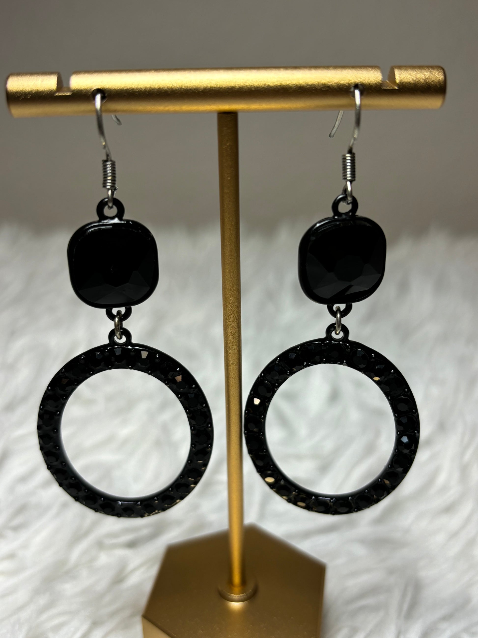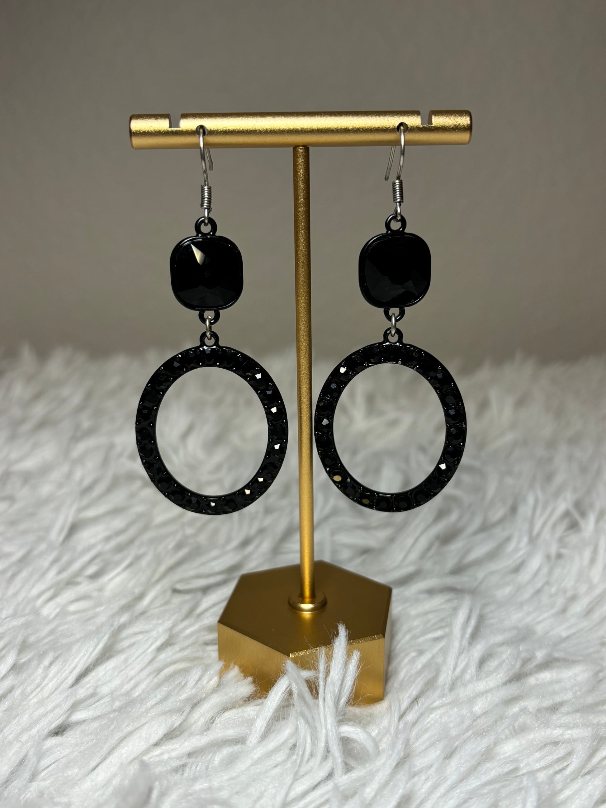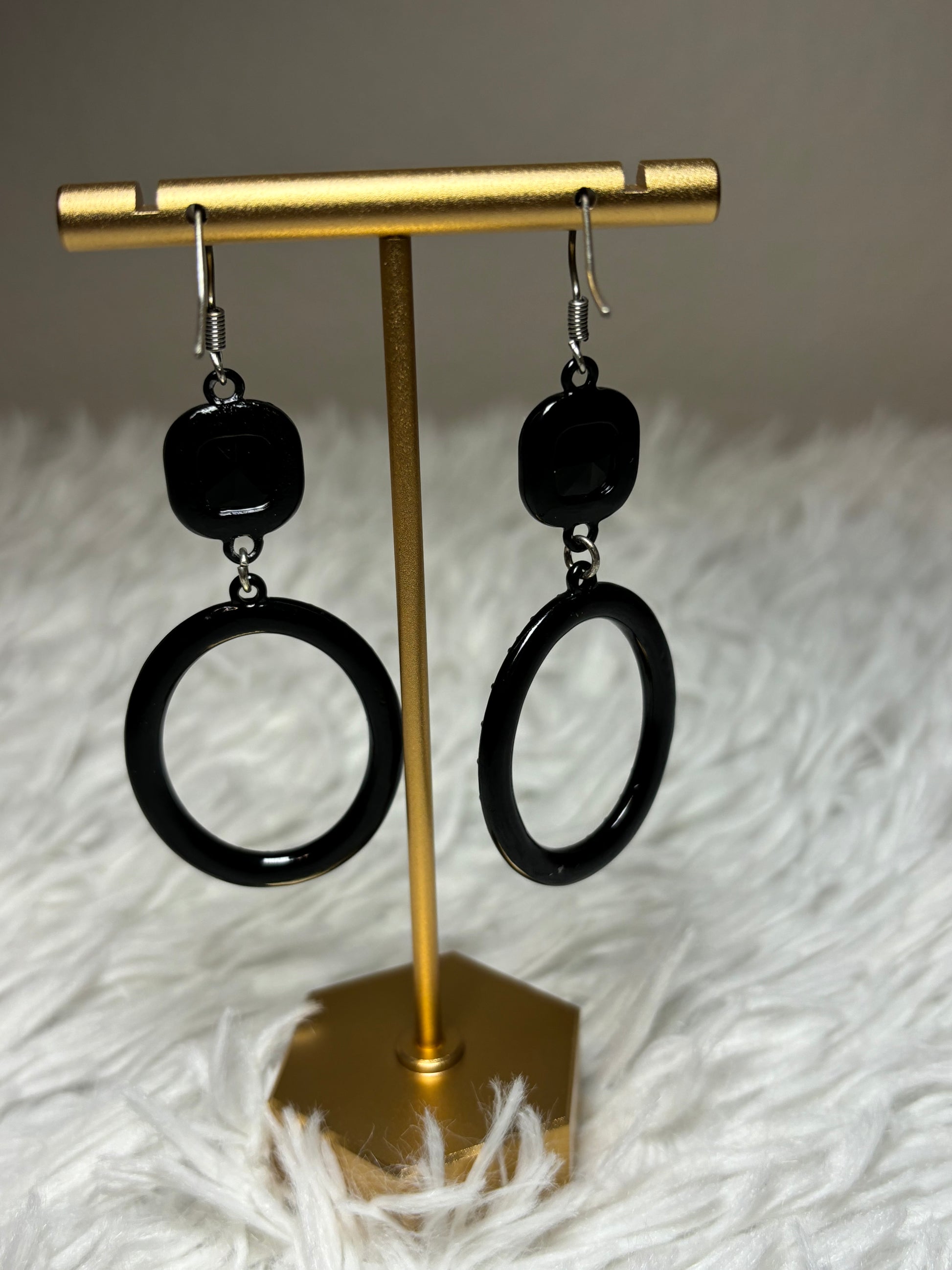 These dangle earrings feature a striking oval-shaped black glass stone that adds a touch of sophistication to any outfit. Measuring 2.25 inches long and 1.25 inches wide, they strike the perfect balance between bold style and wearability. Crafted without lead, these earrings ensure safe, comfortable wear. Ideal for both formal occasions and everyday elegance, they complement a variety of looks with their timeless black color and refined design.