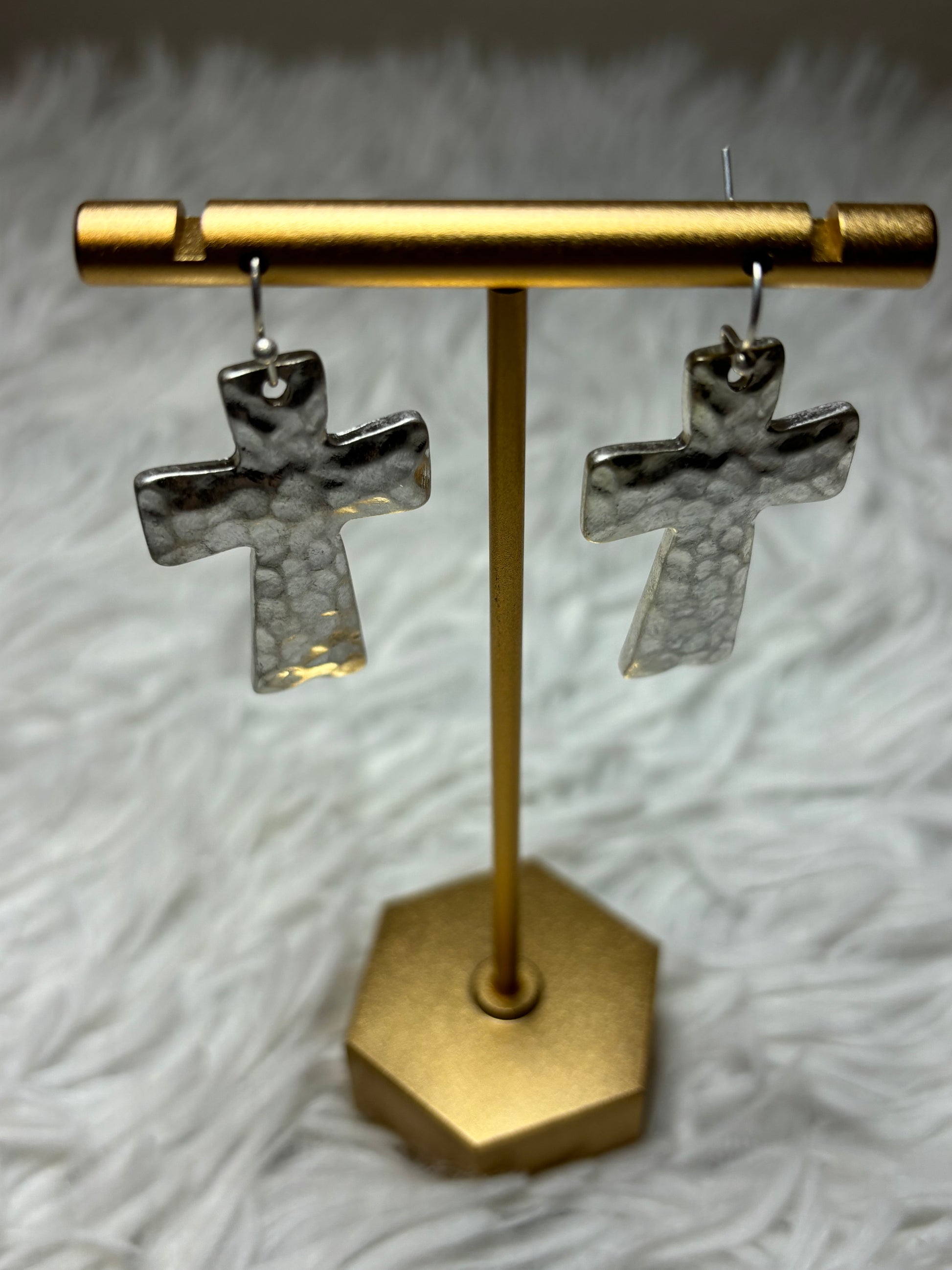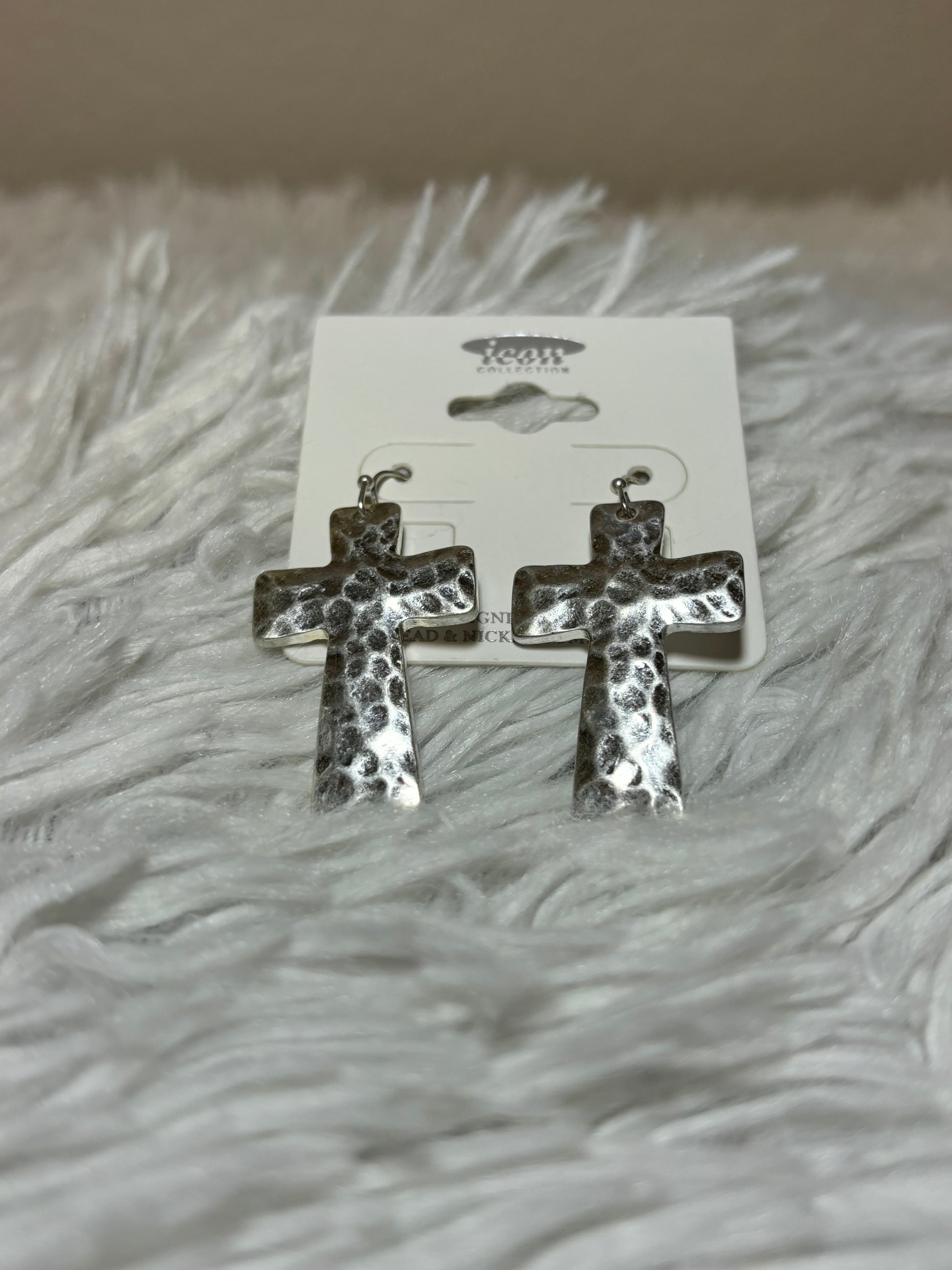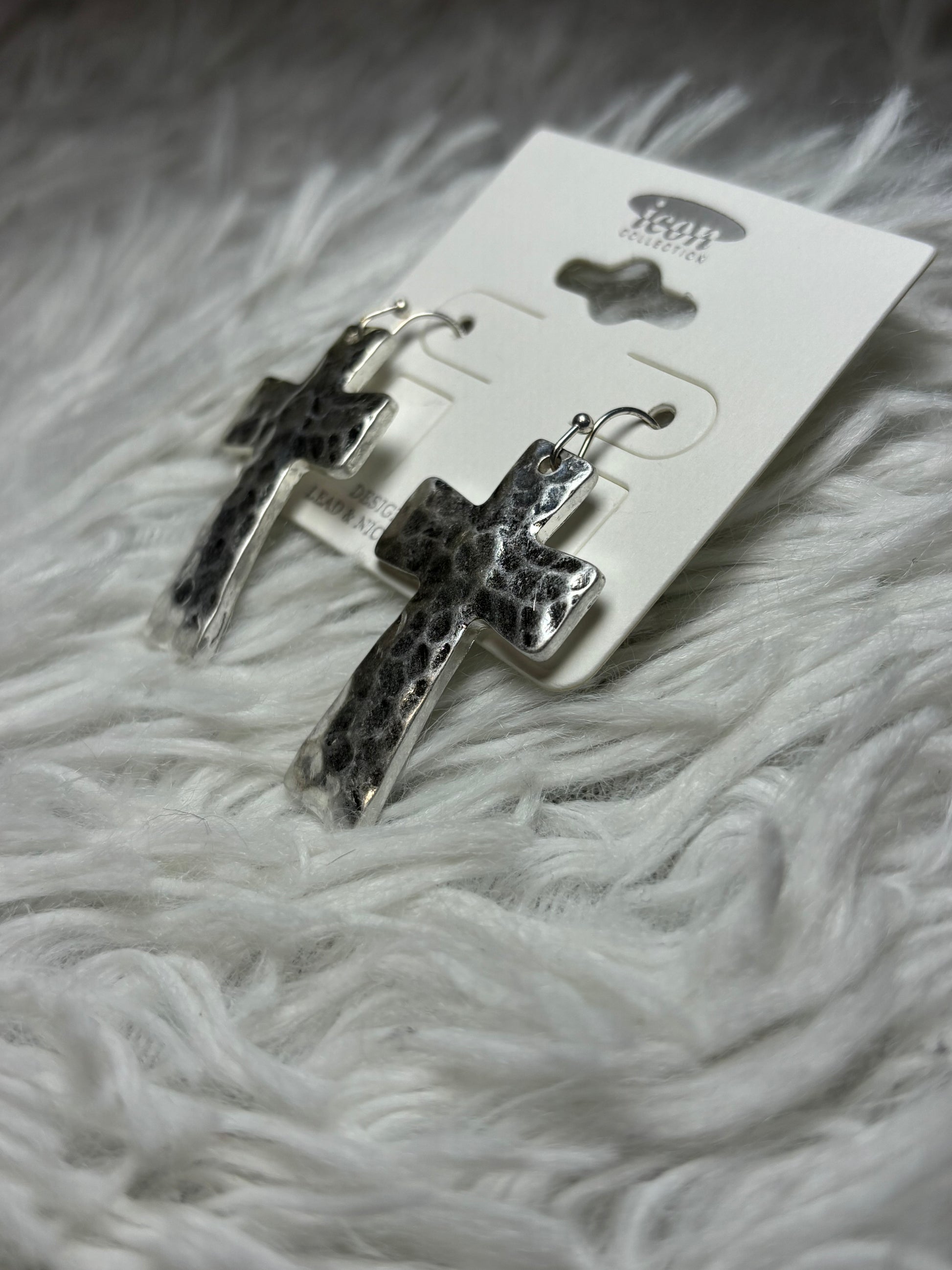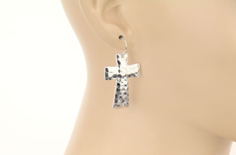 These expertly crafted dangle earrings feature a hammered cross design, adding texture and visual interest to your look. Measuring 1.5 inches long, their worn silver finish offers a vintage-inspired elegance. Made from tailored metal and free from lead and nickel, they ensure safe, comfortable wear for sensitive skin. Ideal for those seeking both style and quality in subtle statement jewelry.