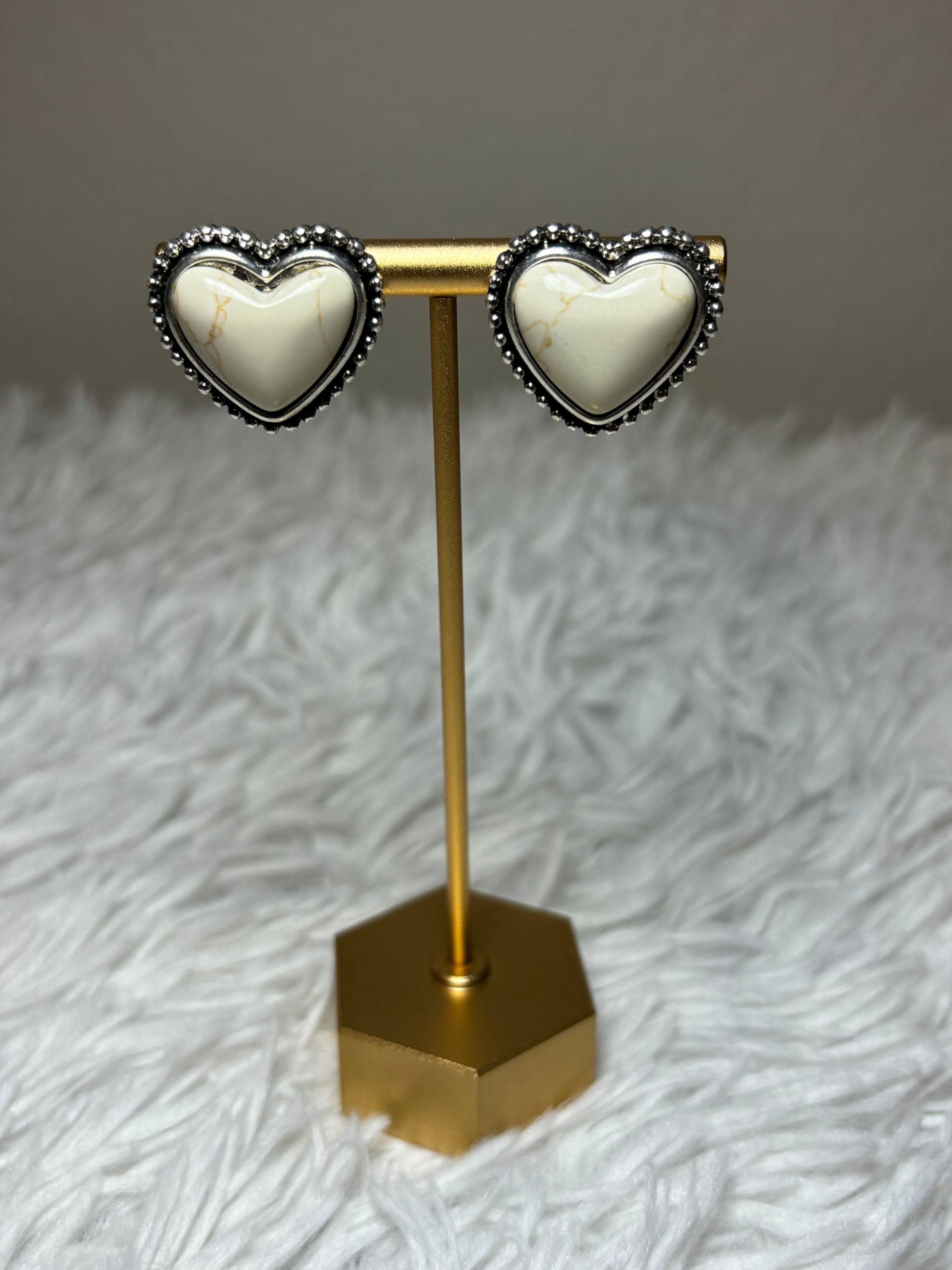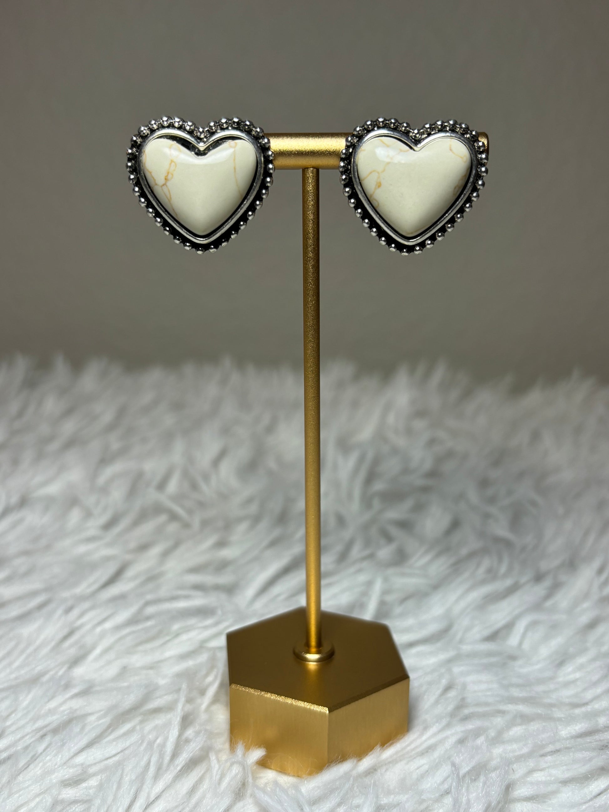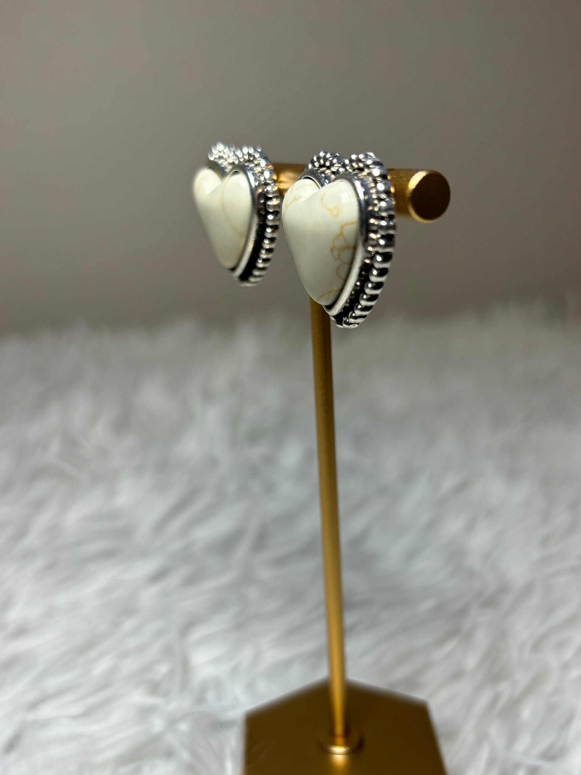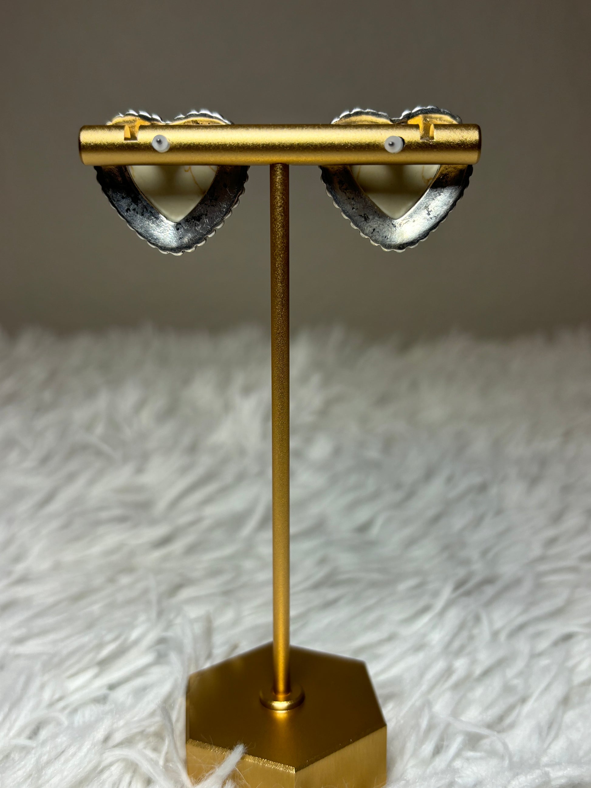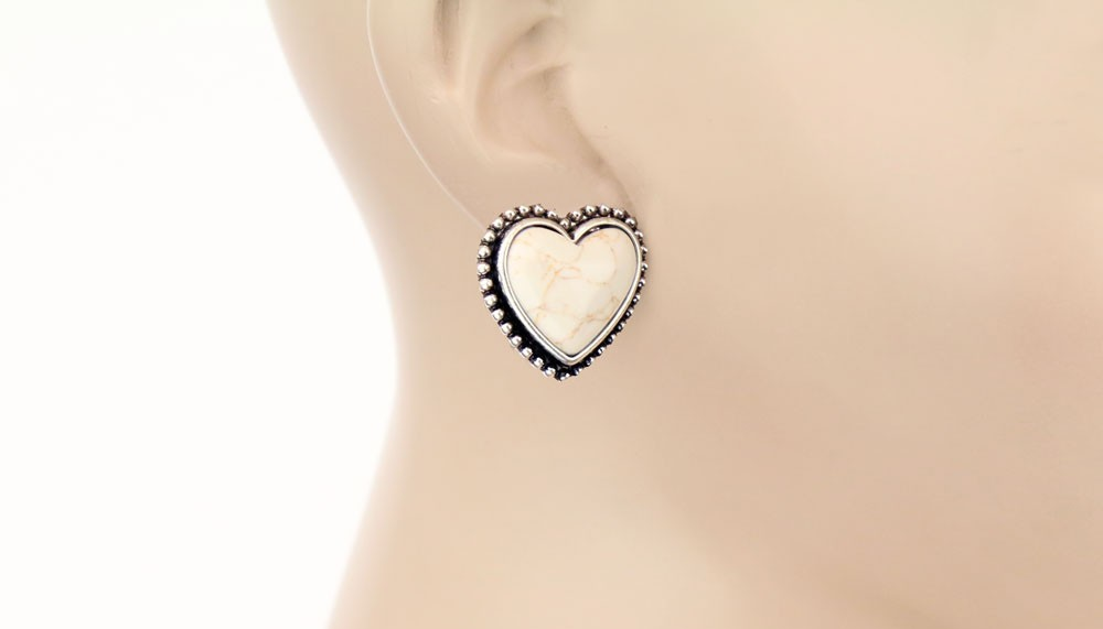 These Heart Stone Stud Earrings offer a refined blend of elegance and comfort, crafted from burnished silver with natural color accents. Measuring 0.75 inches in length and 1 inch in width, they provide a subtle yet distinctive look. Designed to be nickel and lead free, these earrings are suitable for sensitive skin, ensuring safe and stylish wear for any occasion.