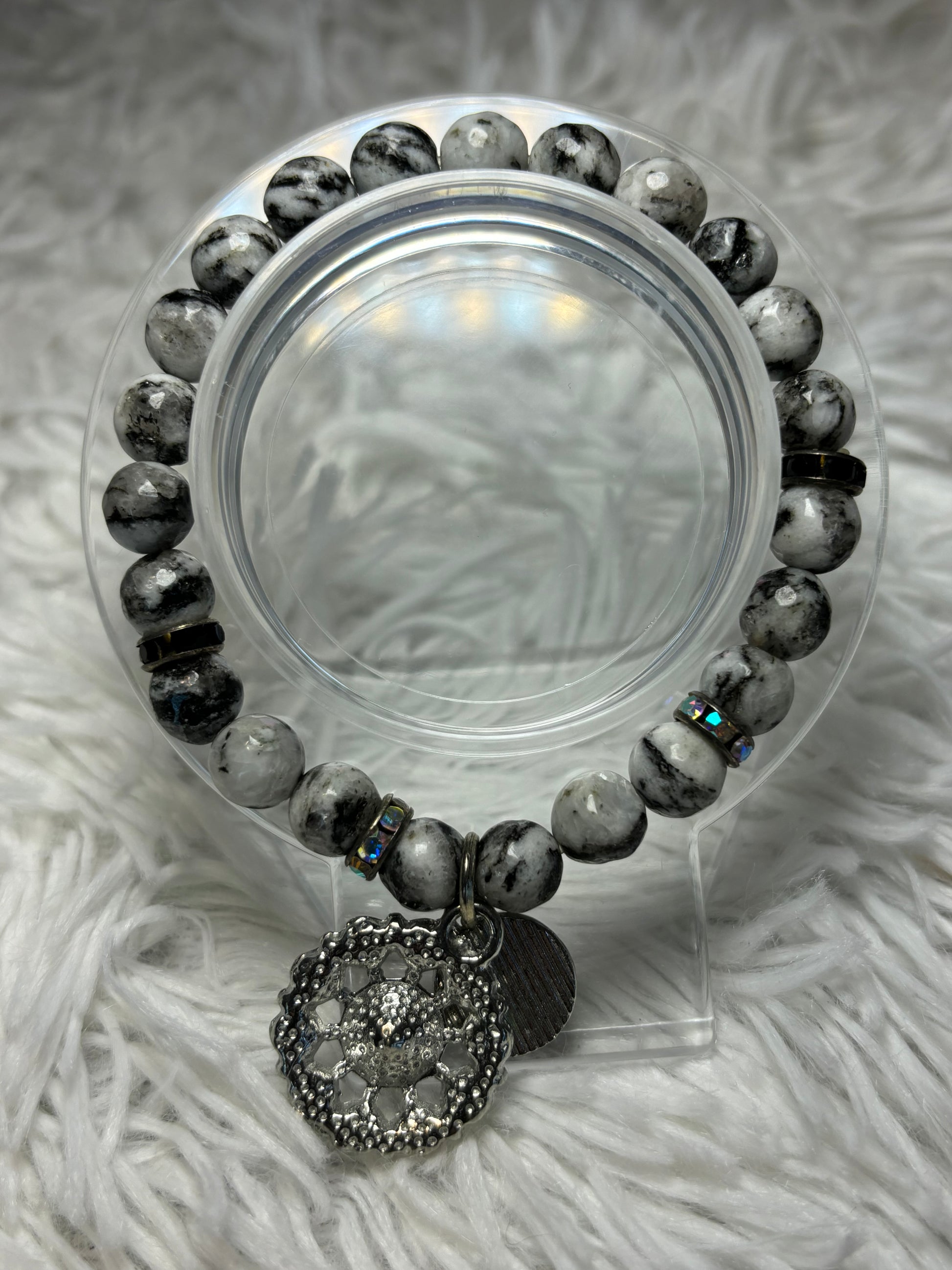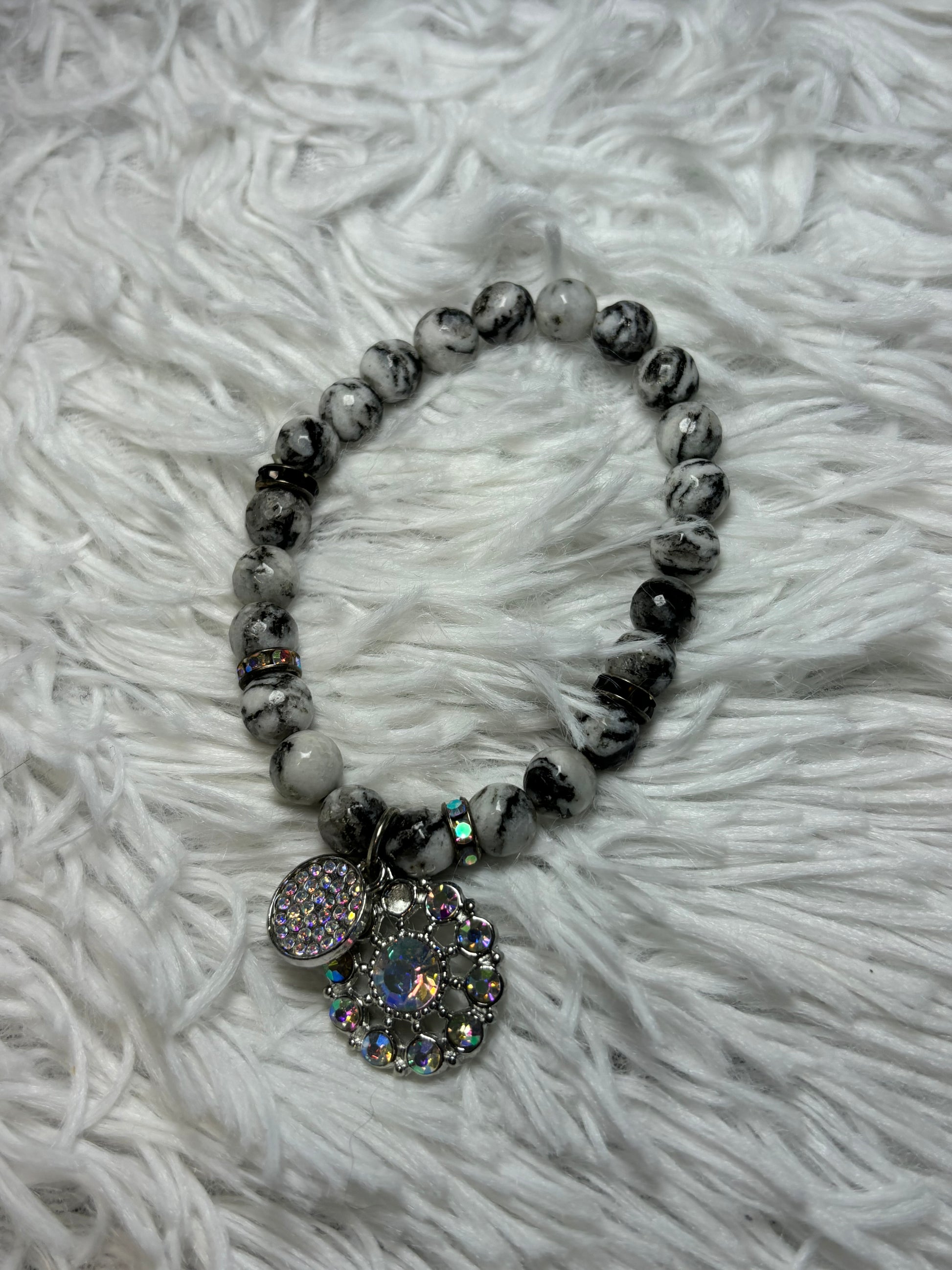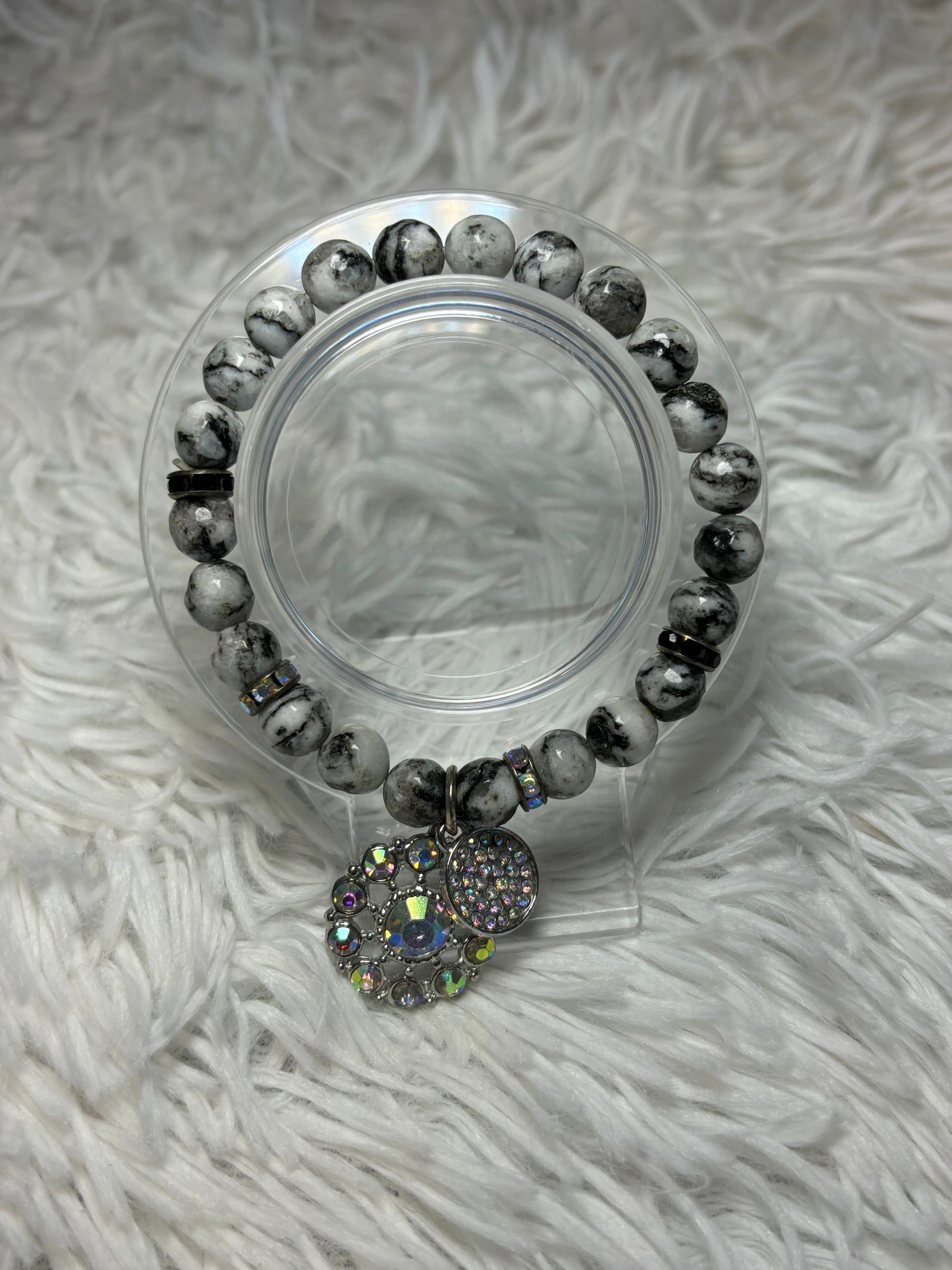 Marble Stretch Bracelet with AB Charms