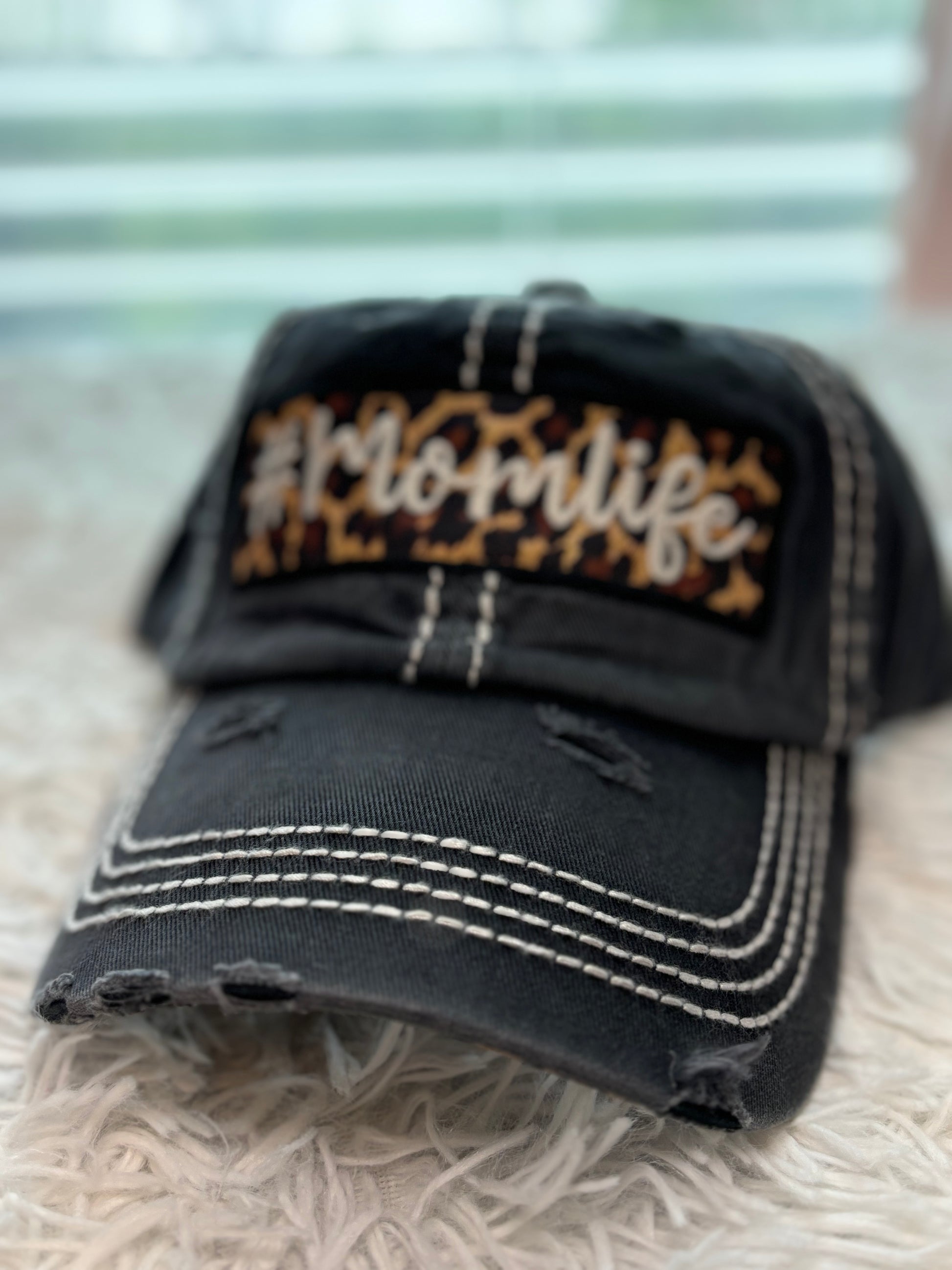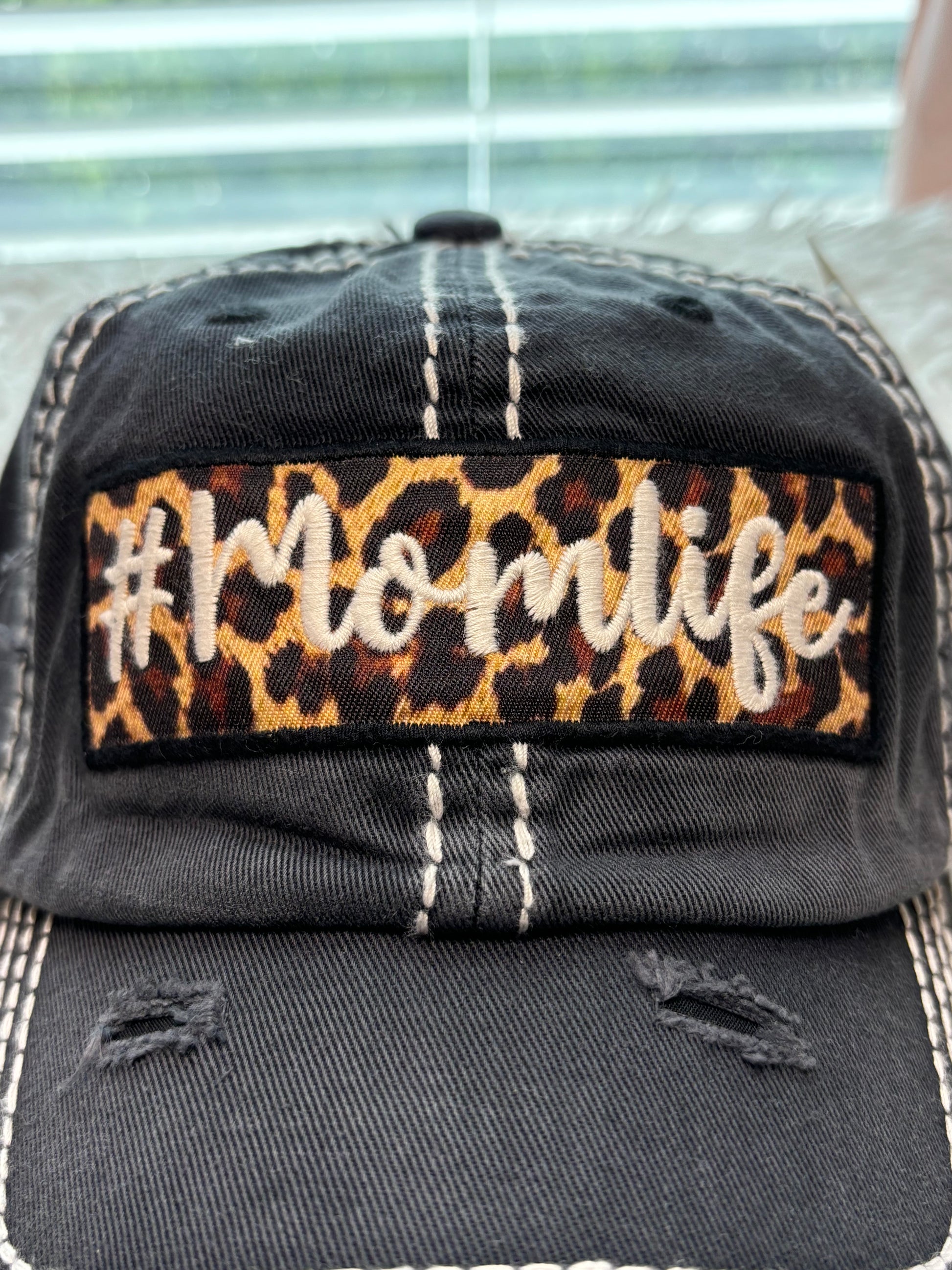 MomLife Leopard Patch On A Washed Vintage Ball Cap