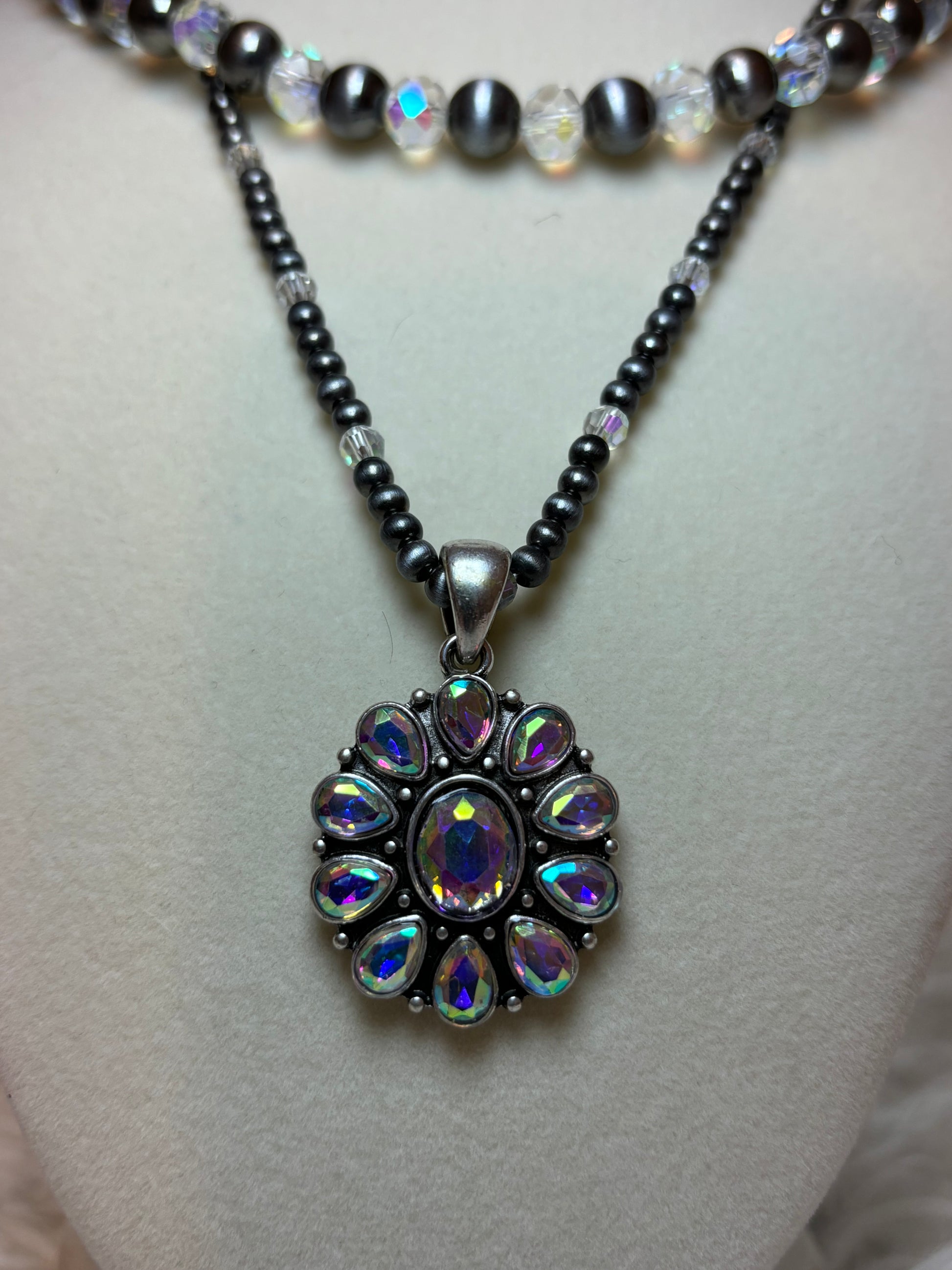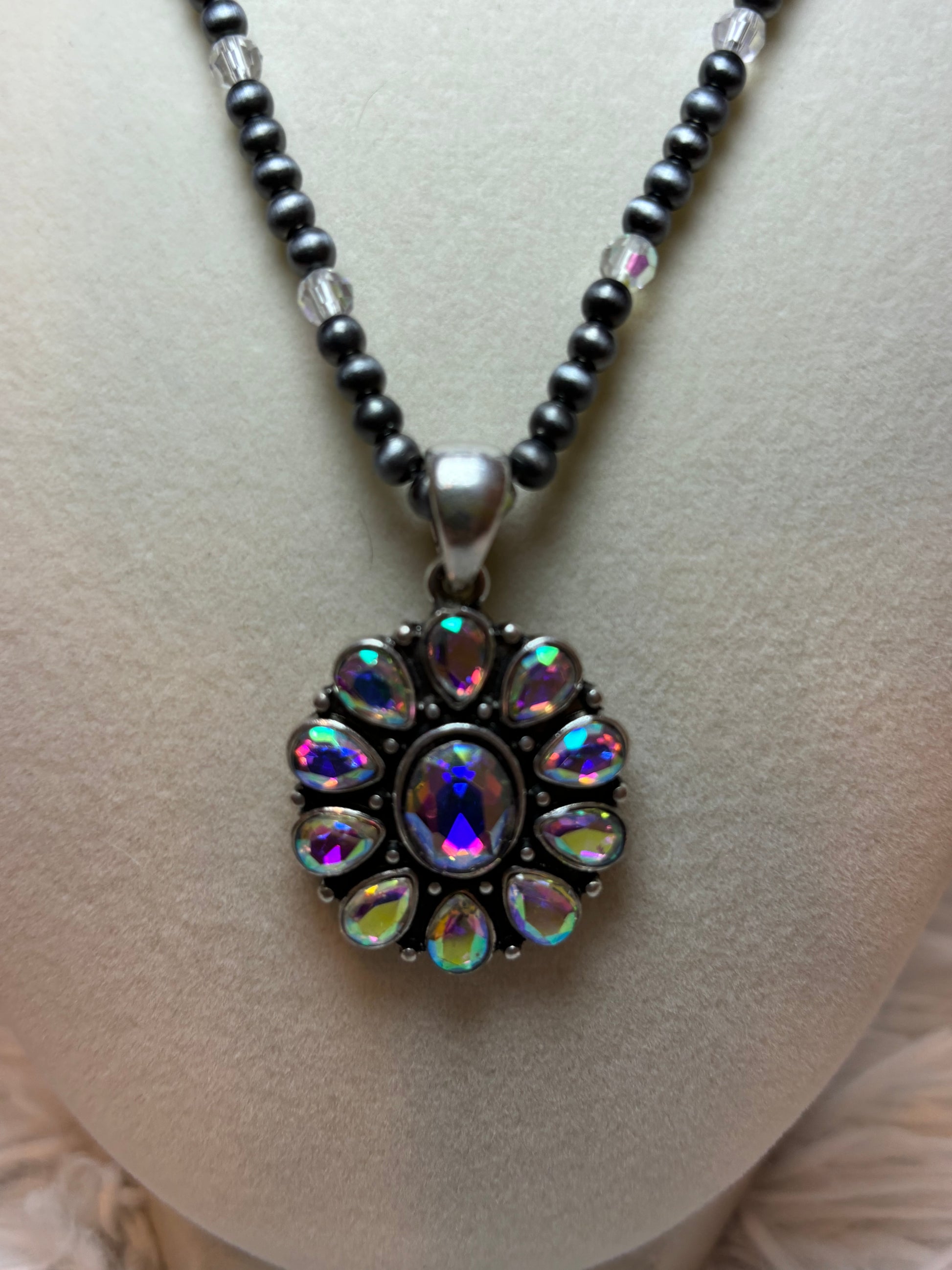 Burnished Silver with AB Stone Concho Pendant