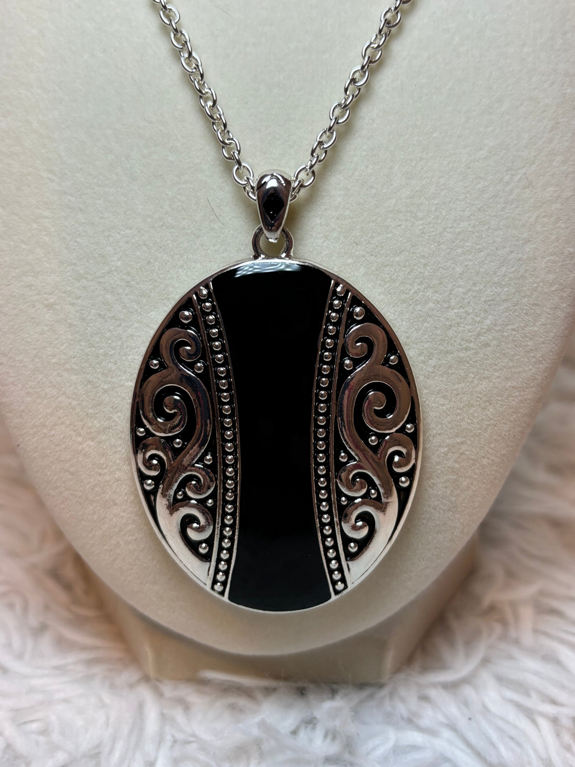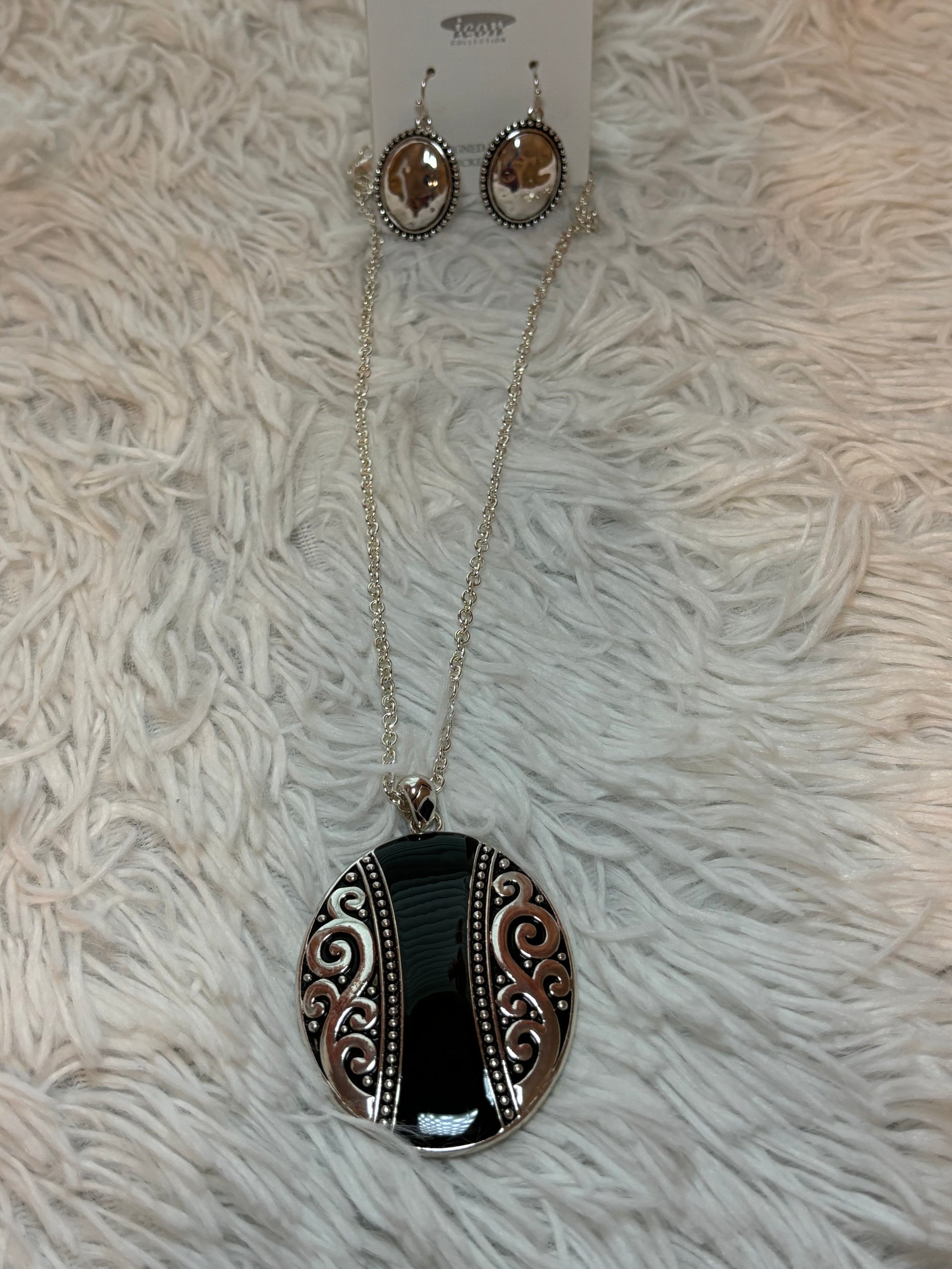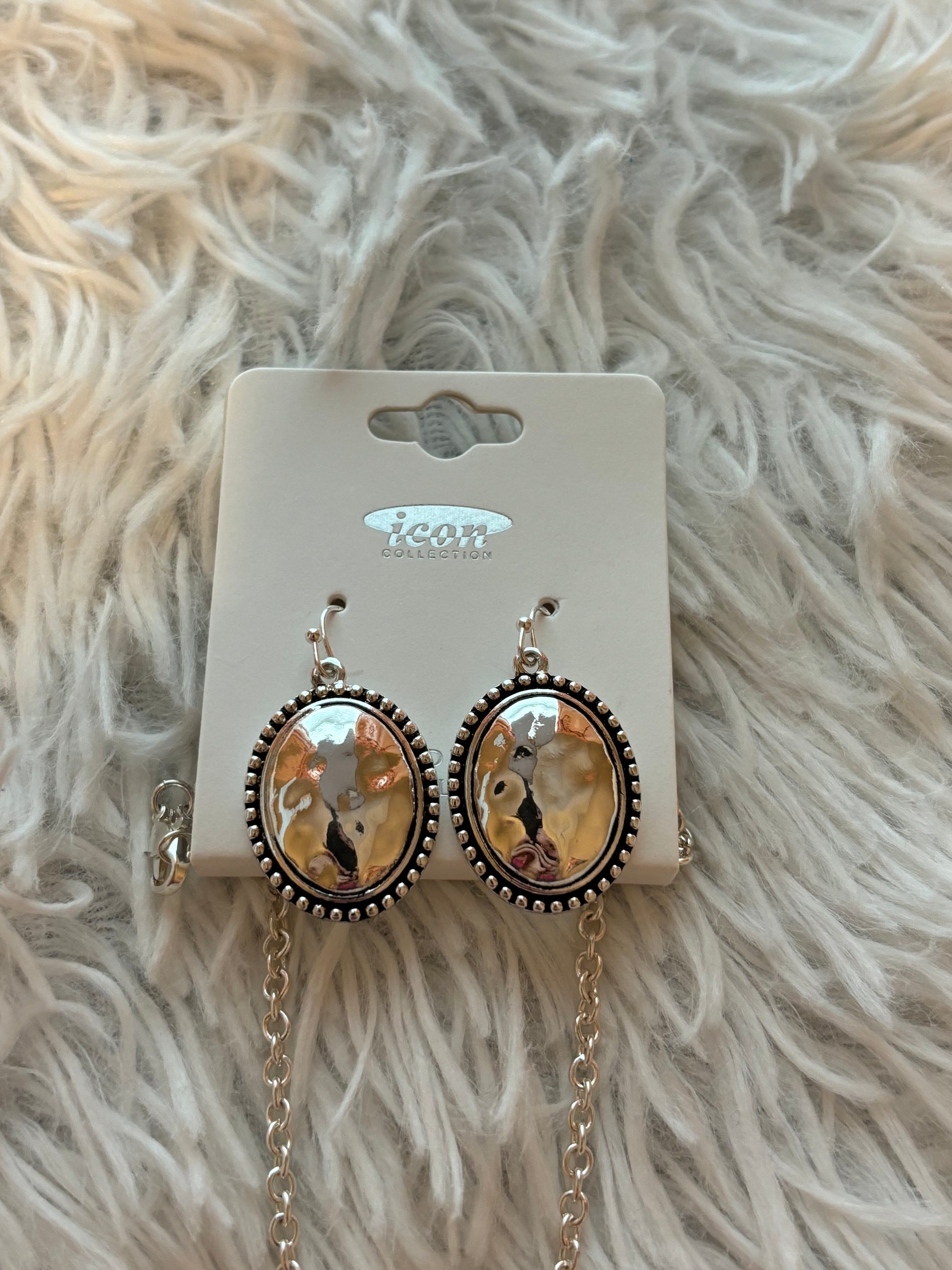 Tailored Round Epoxy Pendant on Silver Necklace with Oval Earrings