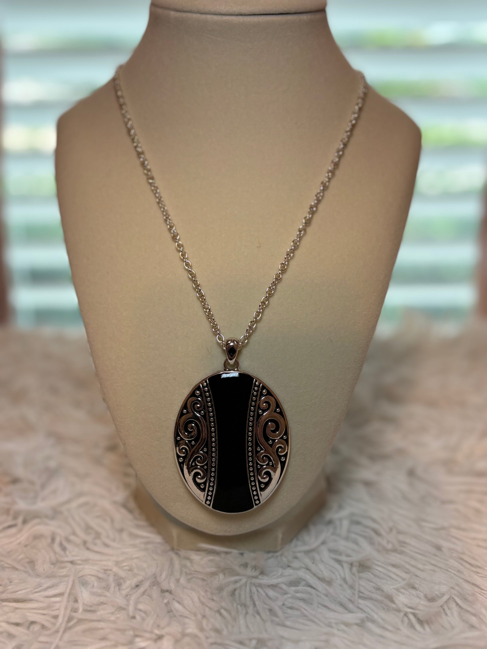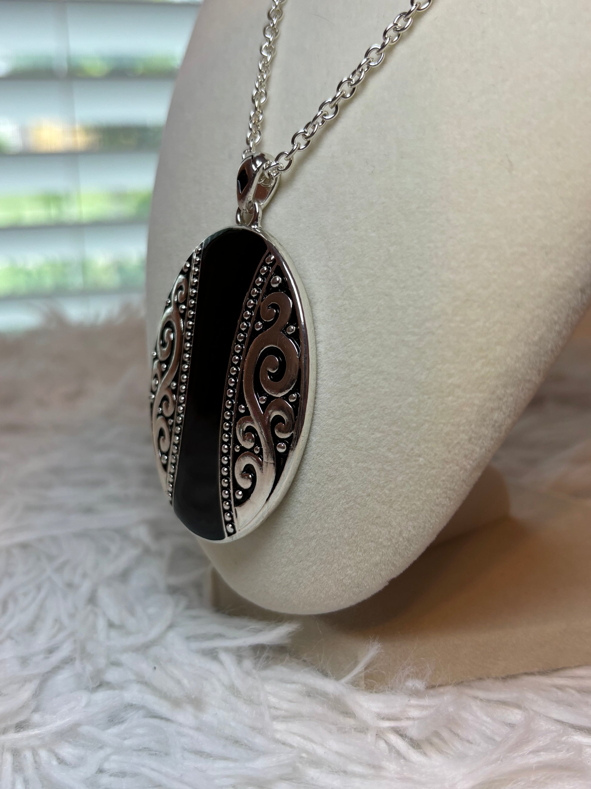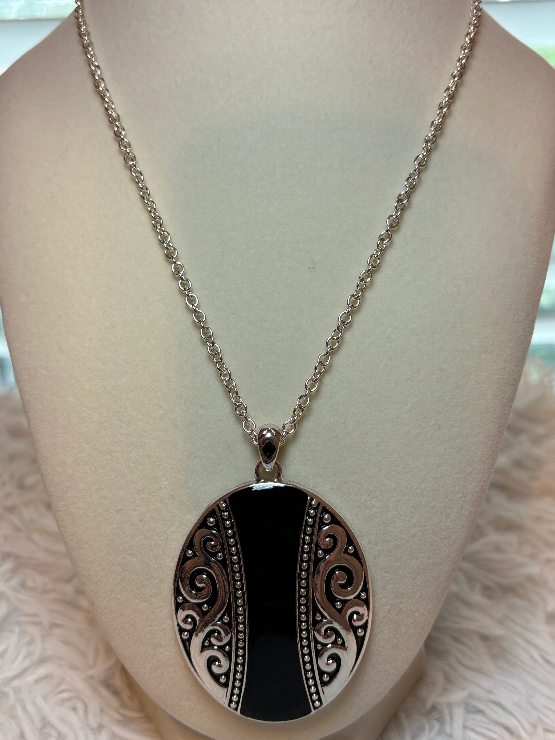 Tailored Round Epoxy Pendant on Silver Necklace with Oval Earrings