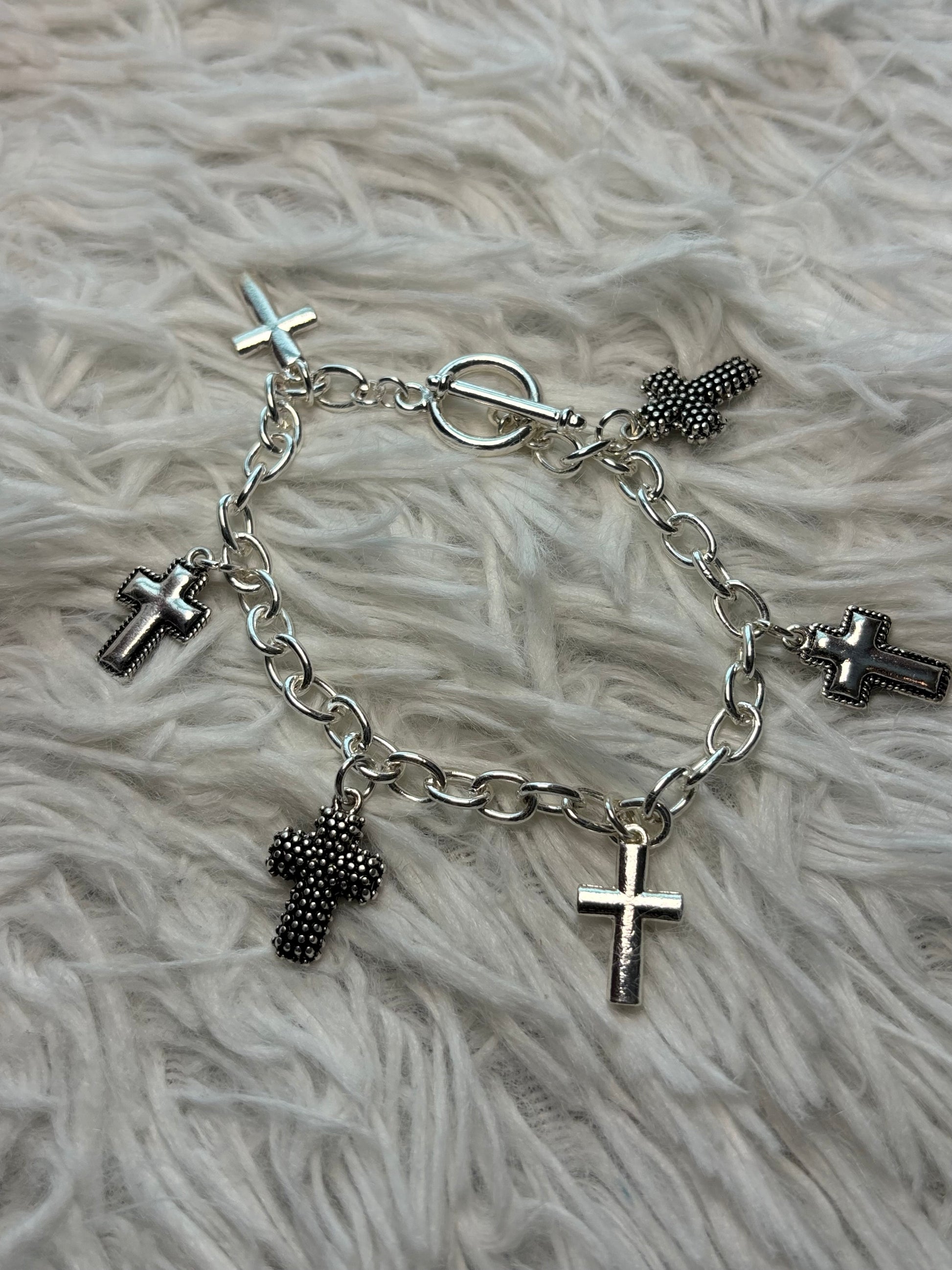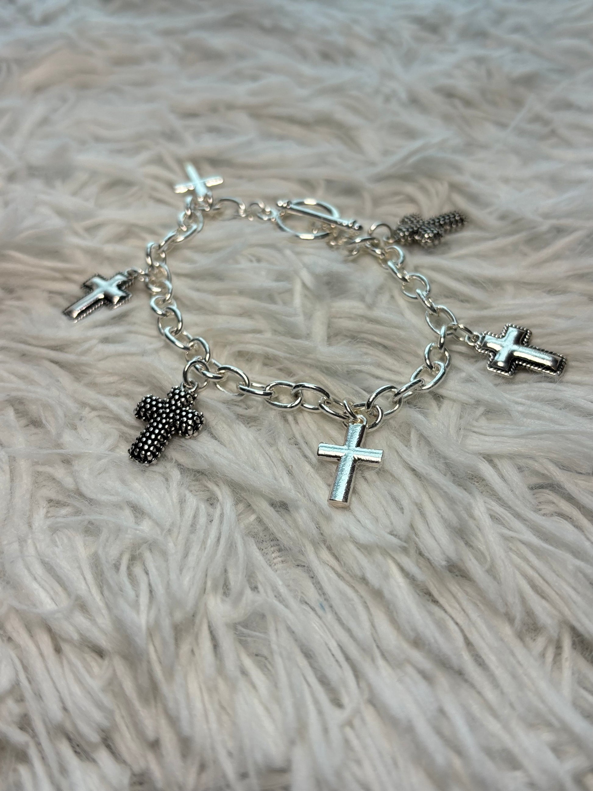 Silver Cross Charm Toggle Bracelet