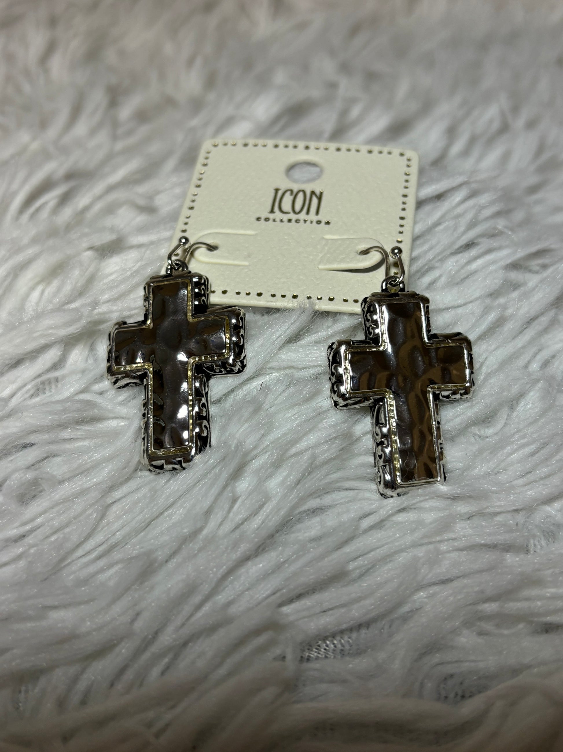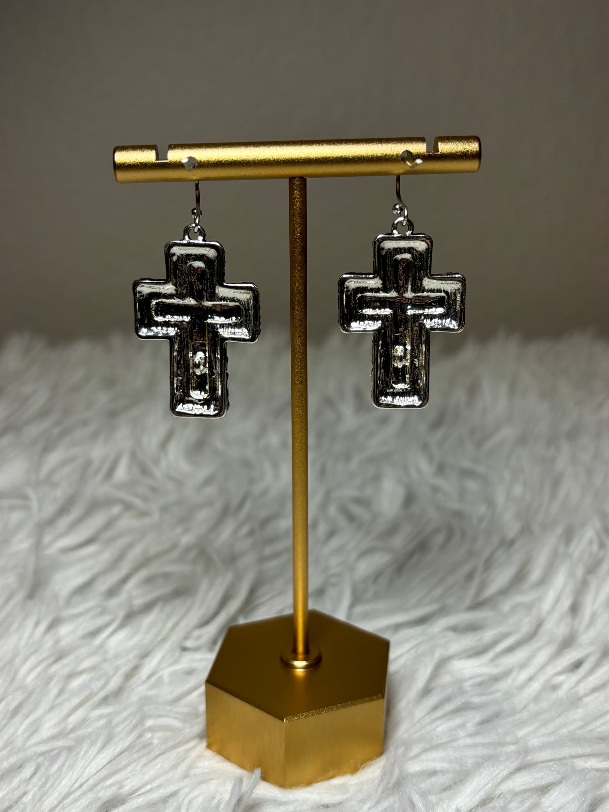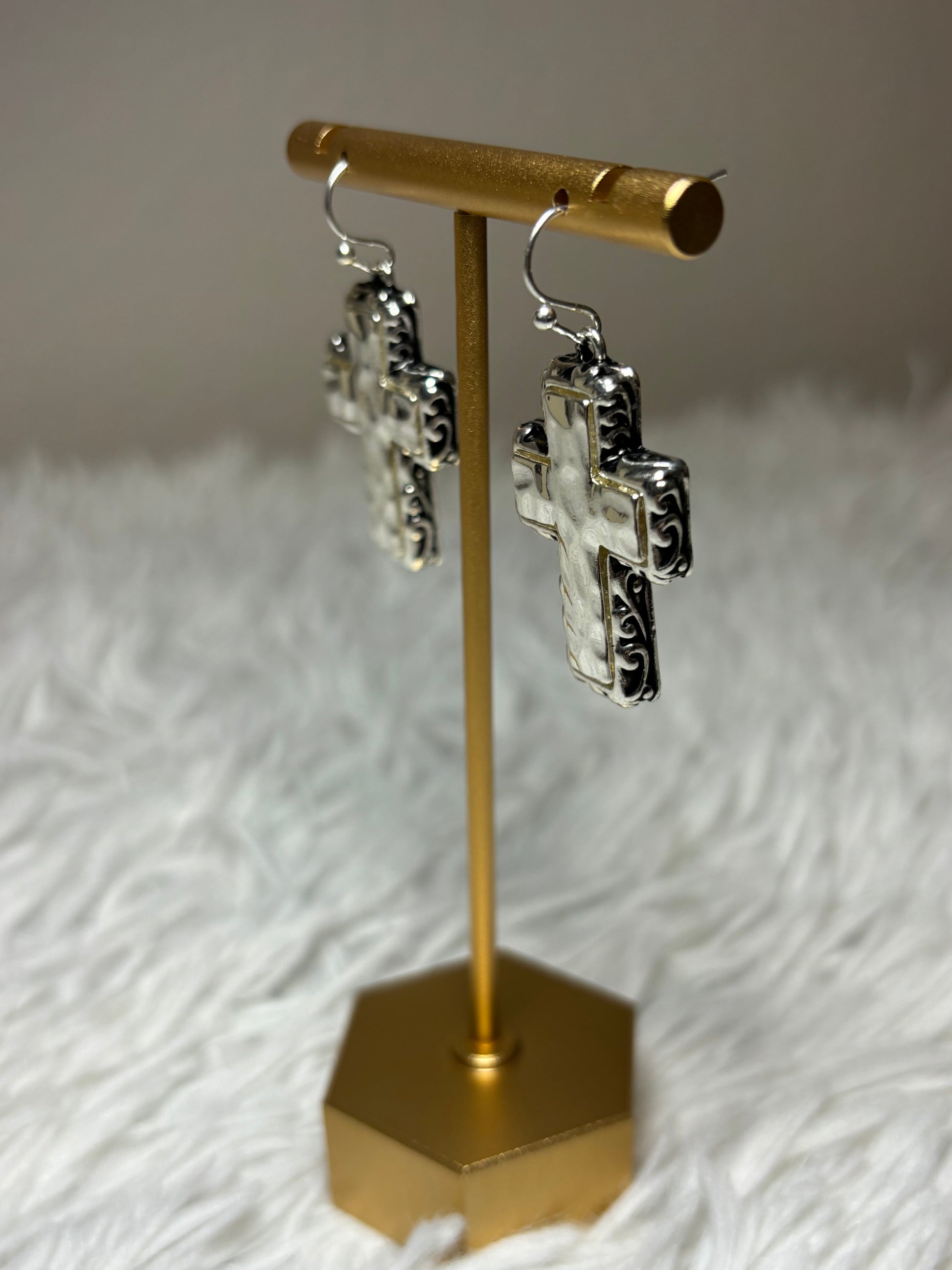 These Tailored Filigree Cross Dangle Earrings showcase intricate antique silver detailing, measuring just over an inch long and under an inch wide for a delicate yet noticeable presence. Crafted without lead or nickel, they offer a comfortable and safe wear for sensitive skin. Their refined design adds a subtle, elegant statement to any outfit, ideal for those seeking a timeless accessory with expert craftsmanship.
