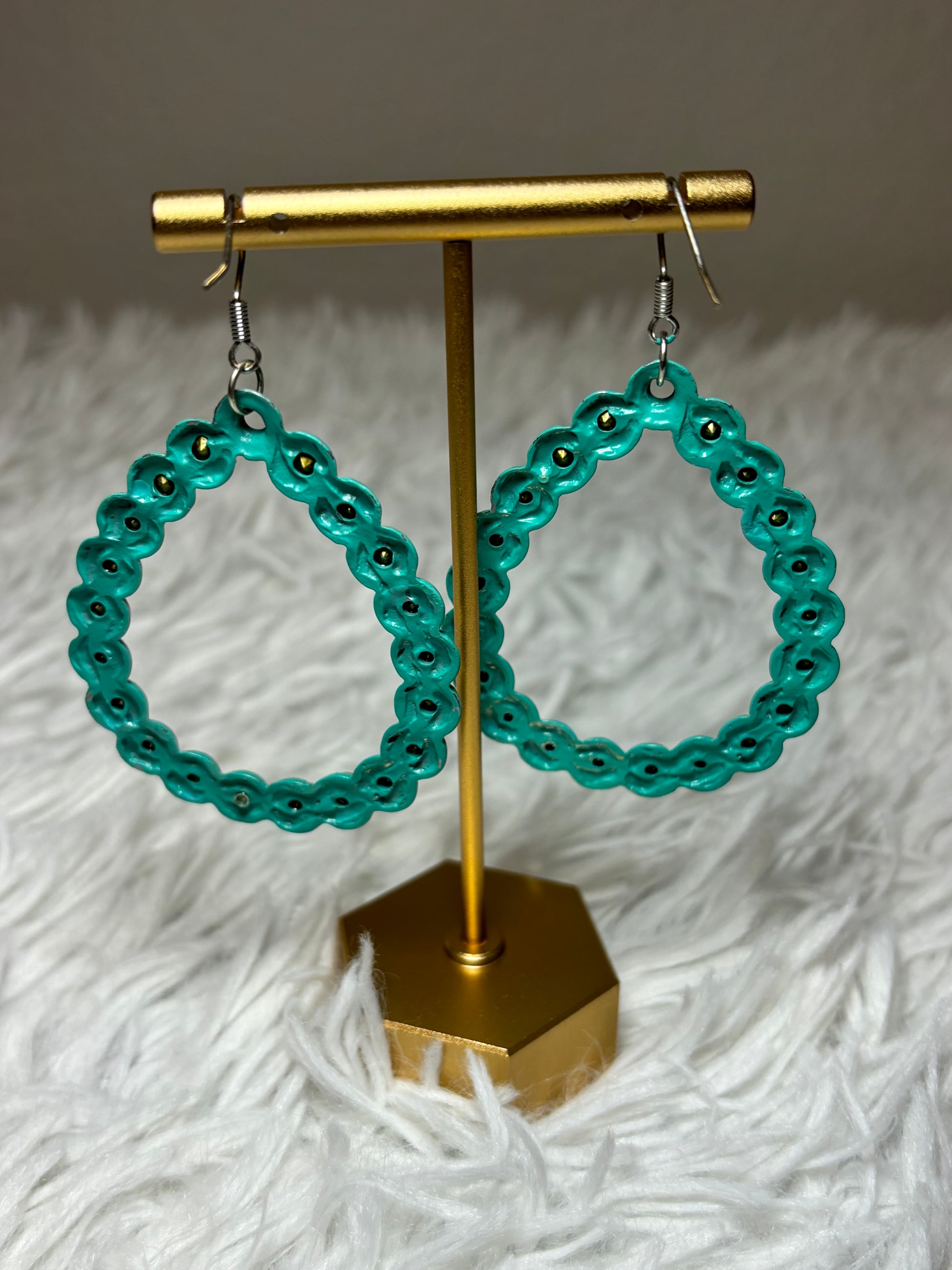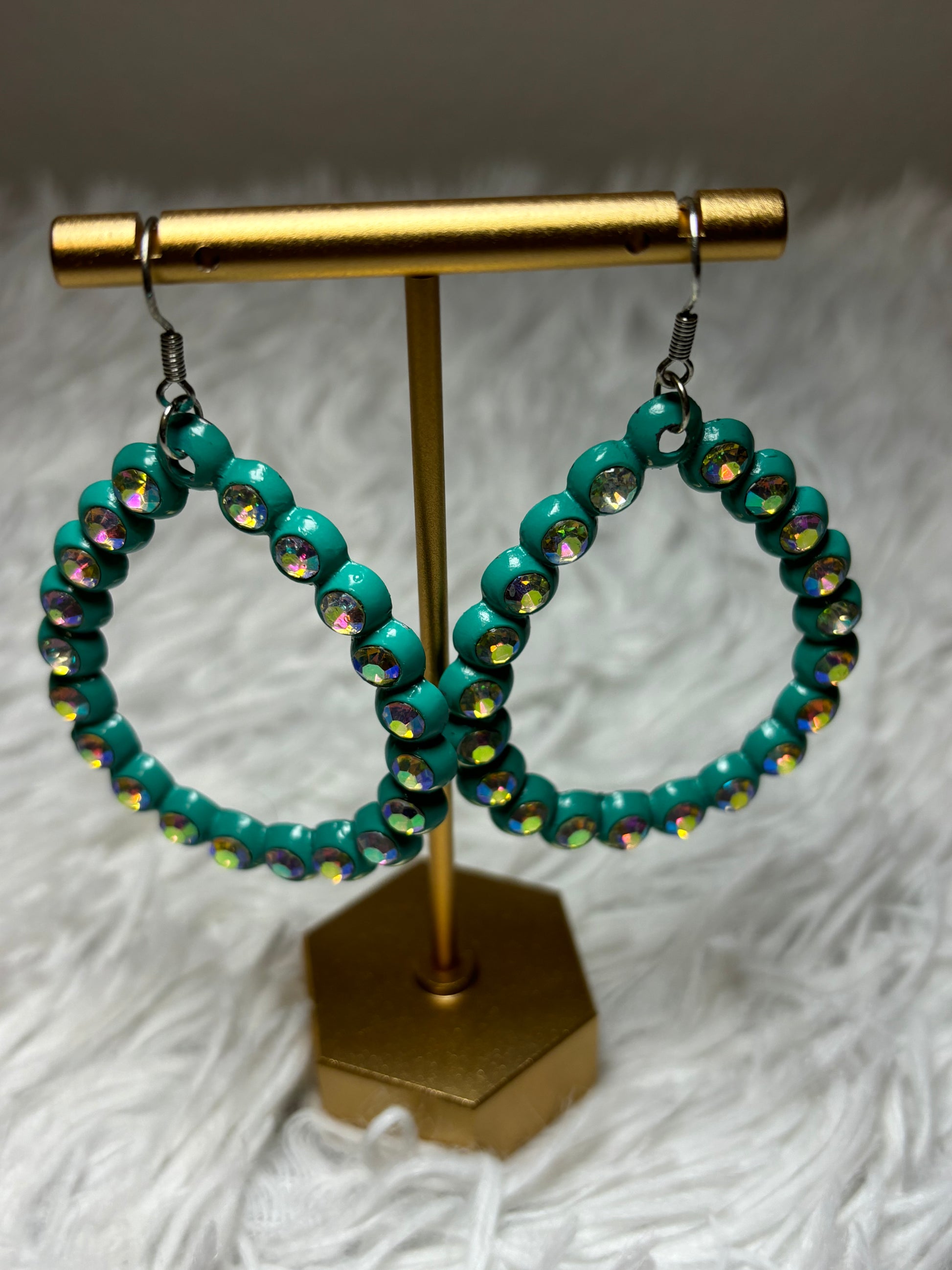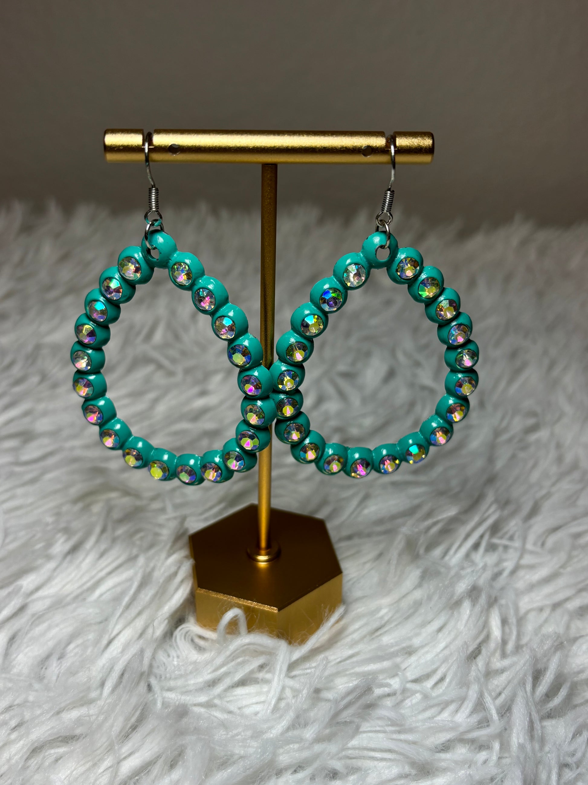 These Tear Drop Fish Hook Earrings feature a striking burnished turquoise metal plate adorned with shimmering AB rhinestones, combining bold design with vibrant color. Measuring 2.75 inches in length and nearly 2 inches in width, they make a statement while remaining lightweight and comfortable. Crafted from lead-free materials, these earrings offer a safe and stylish accessory choice for discerning wearers.